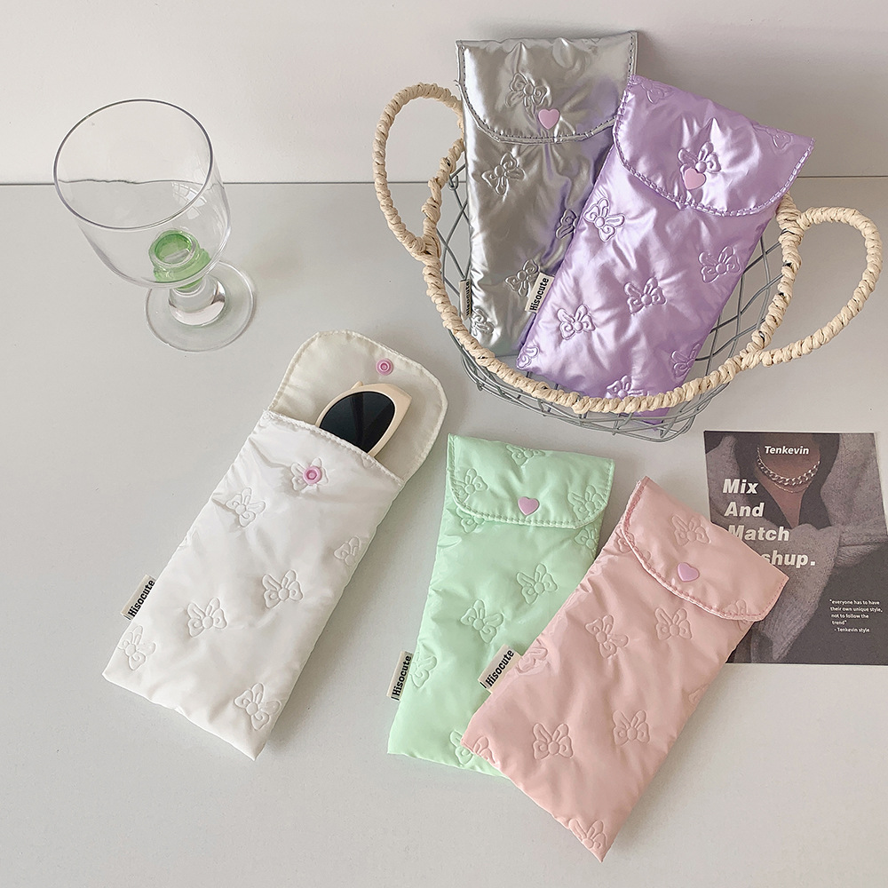 韓国スタイルの女の子の光沢のあるリボンメガネ収納袋ポータブルソフトサングラス収納袋学生鉛筆バッグ