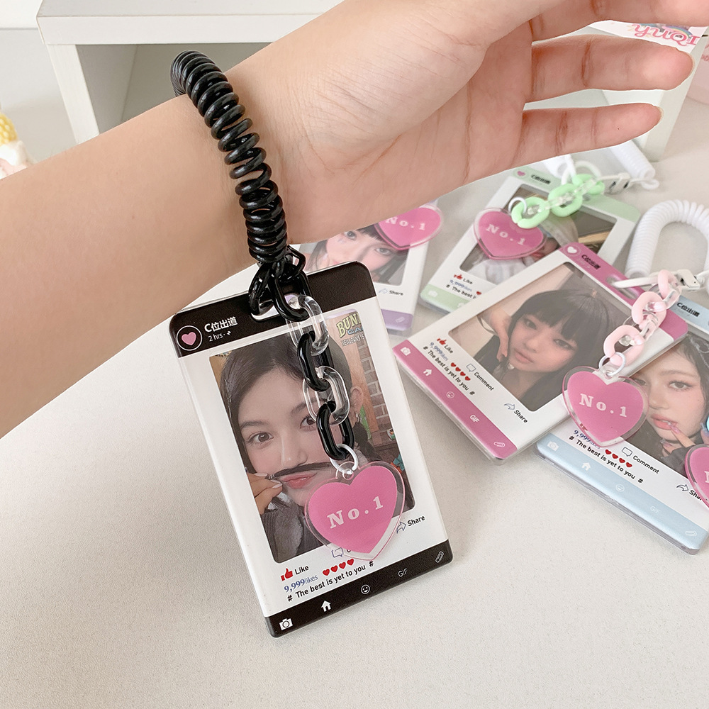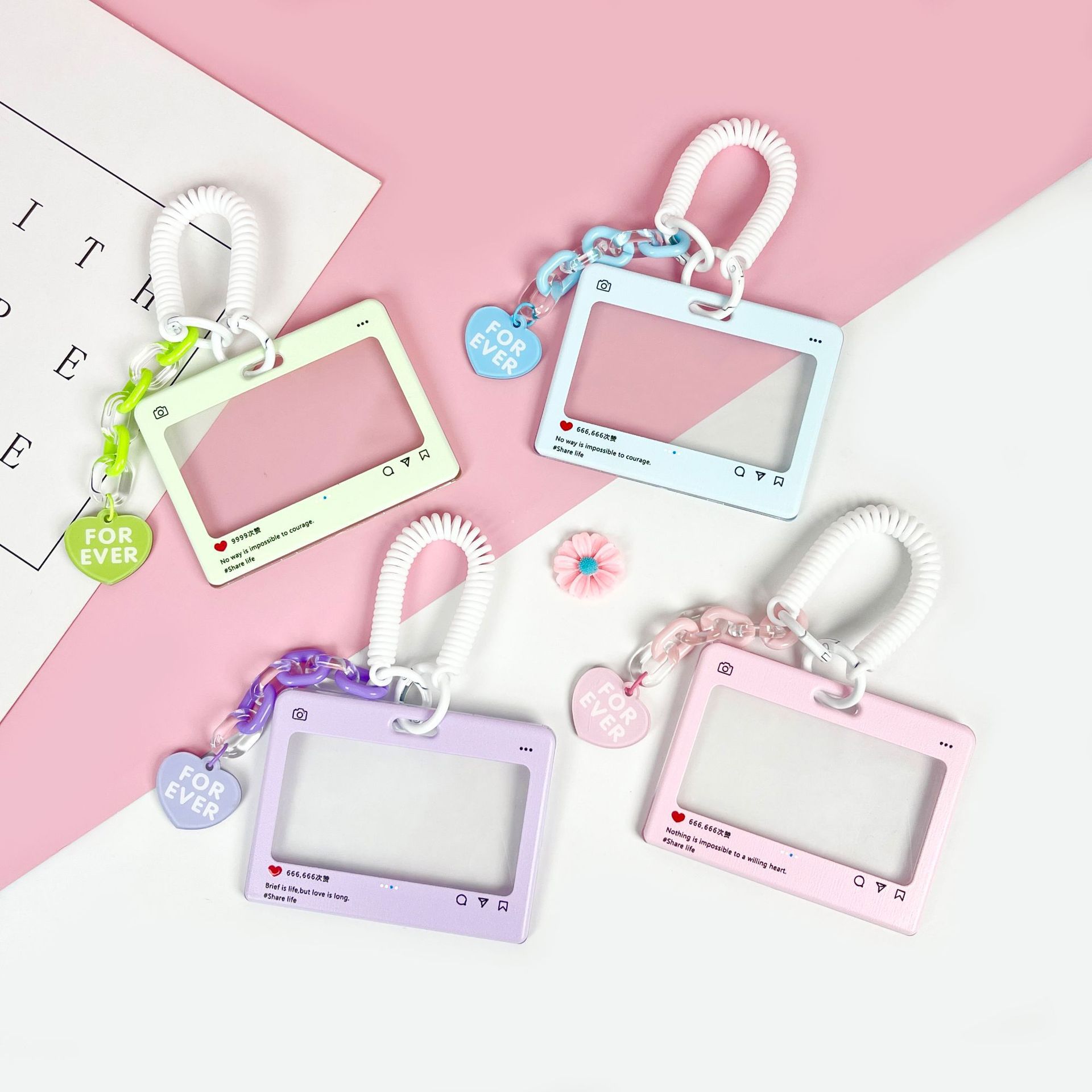 ins风拍立得卡套学生校园卡饭卡包追星小卡硬卡套防丢弹力钥匙扣