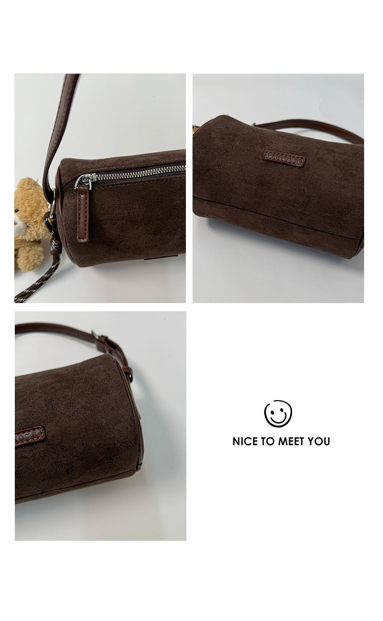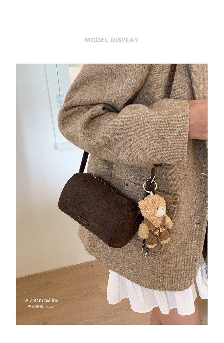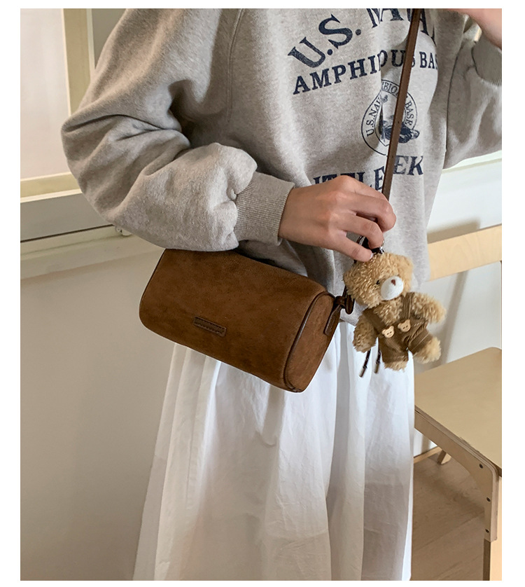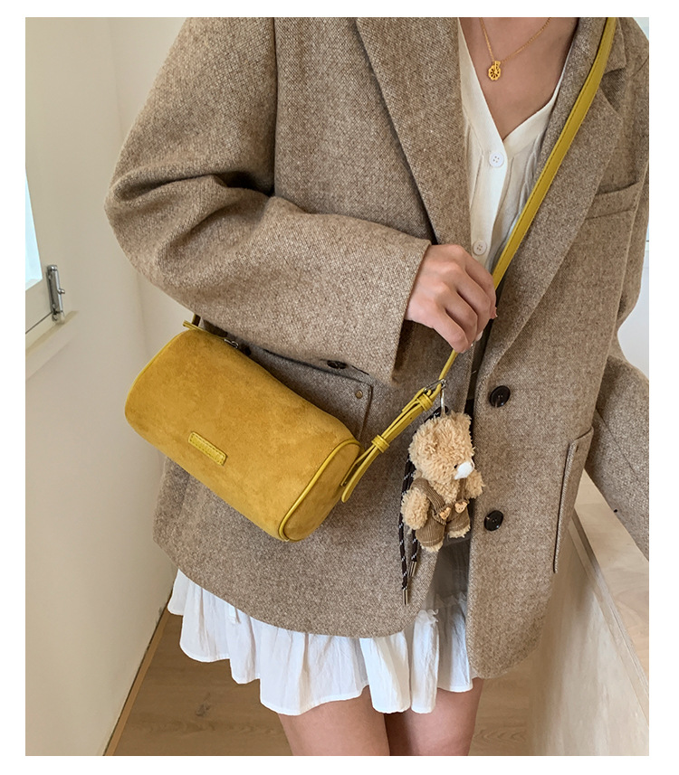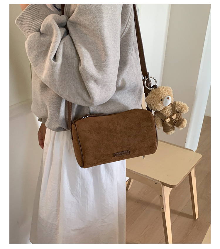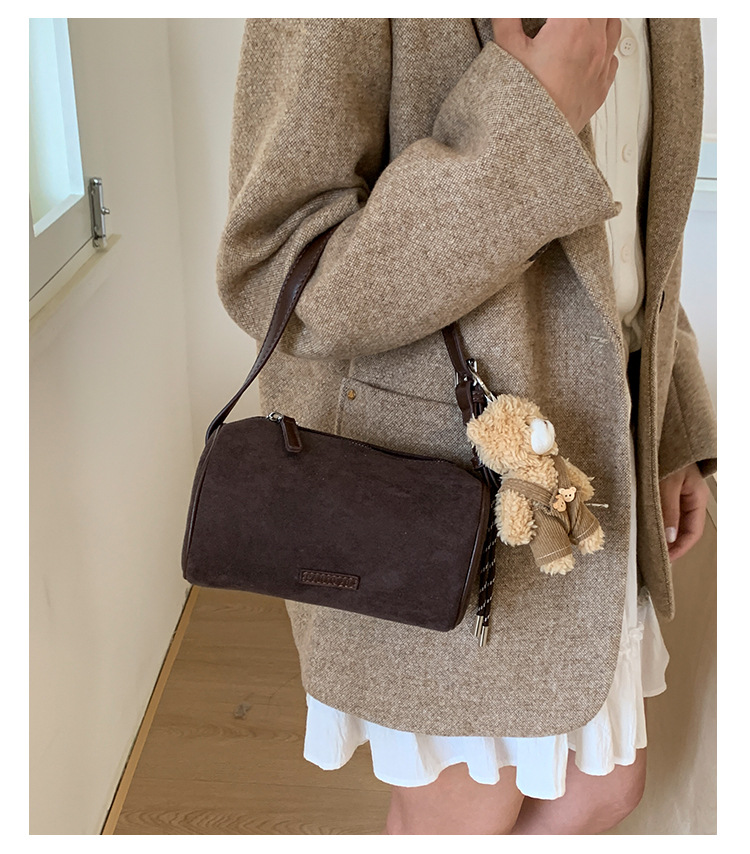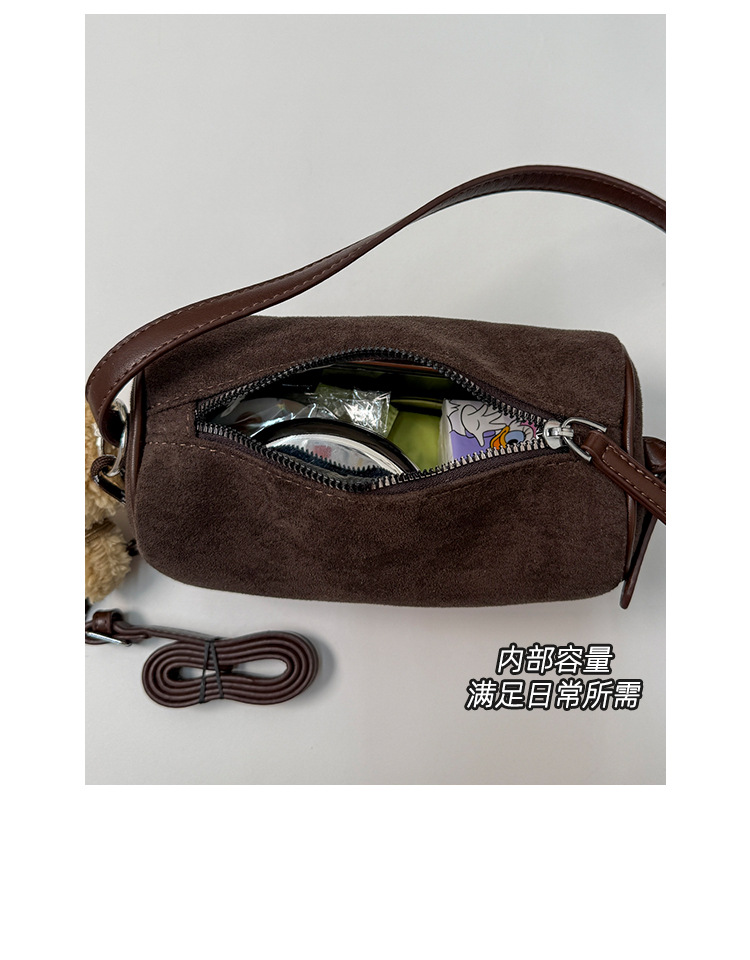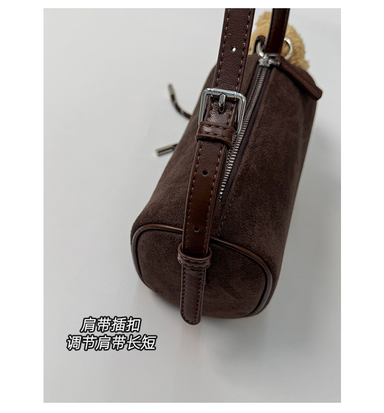 复古麂皮绒枕头包女2025秋冬新款时尚圆筒包百搭通勤单肩斜挎包