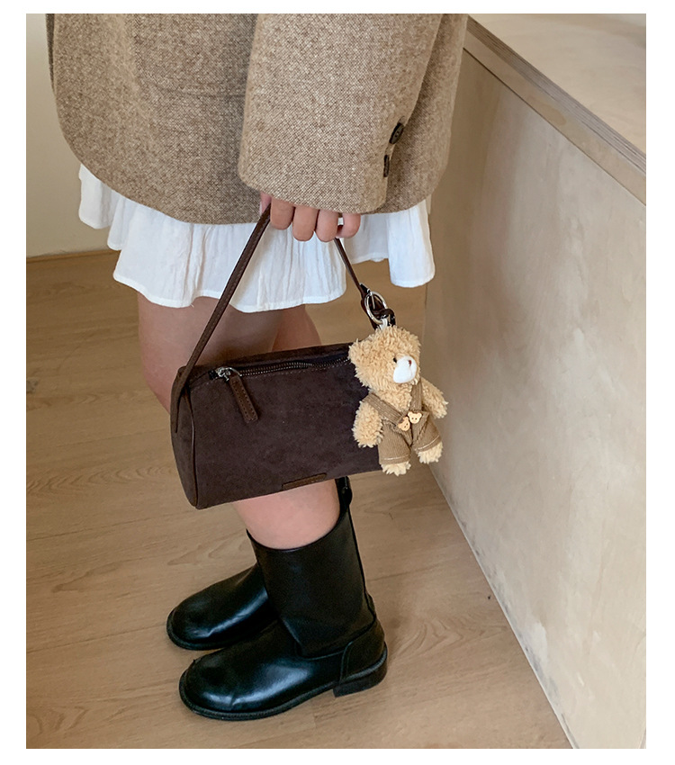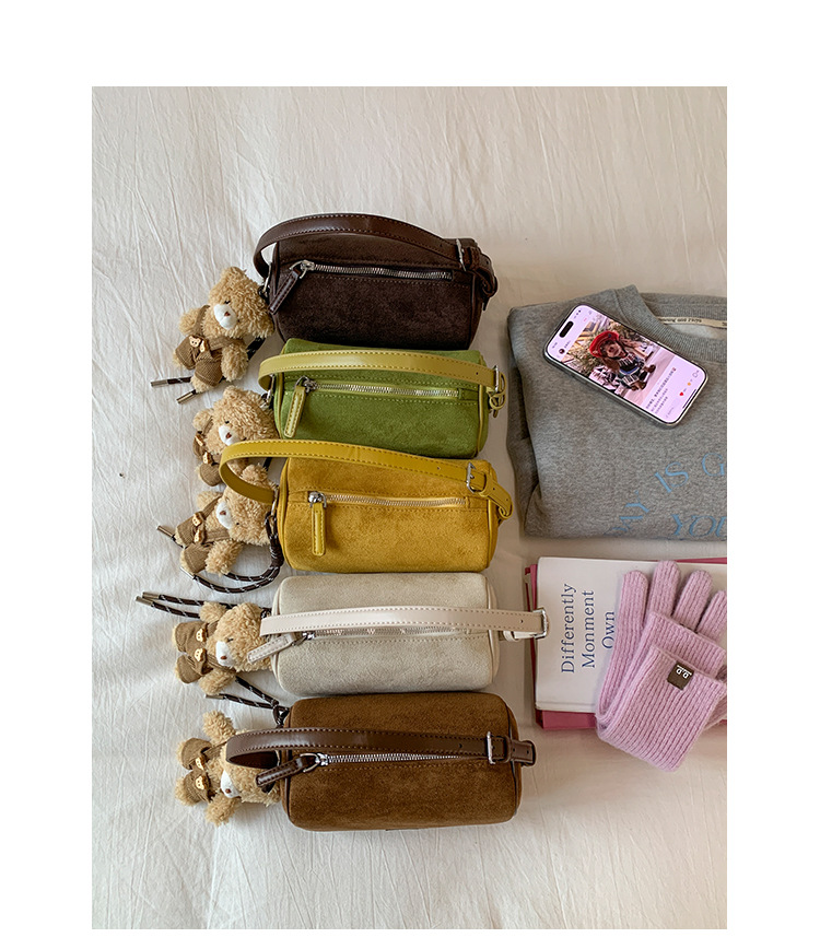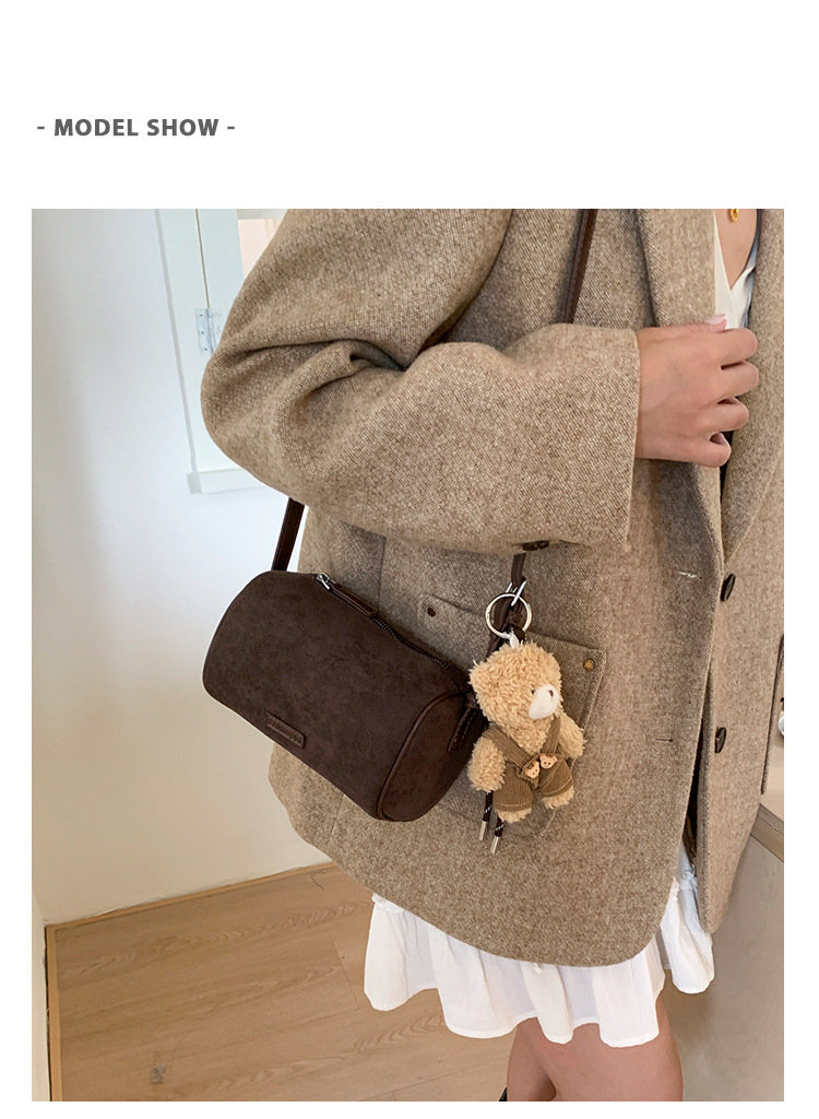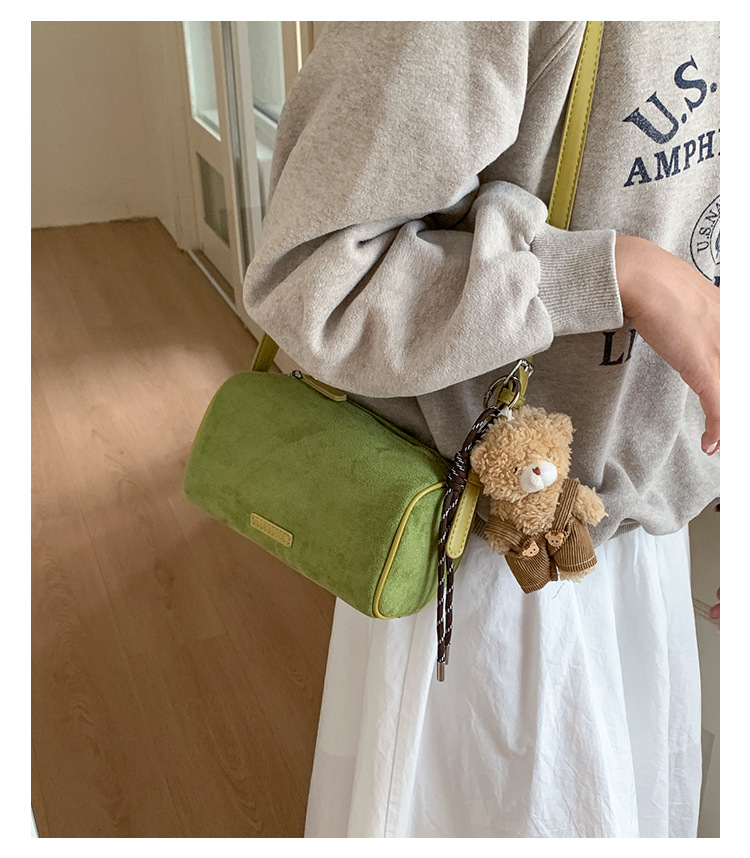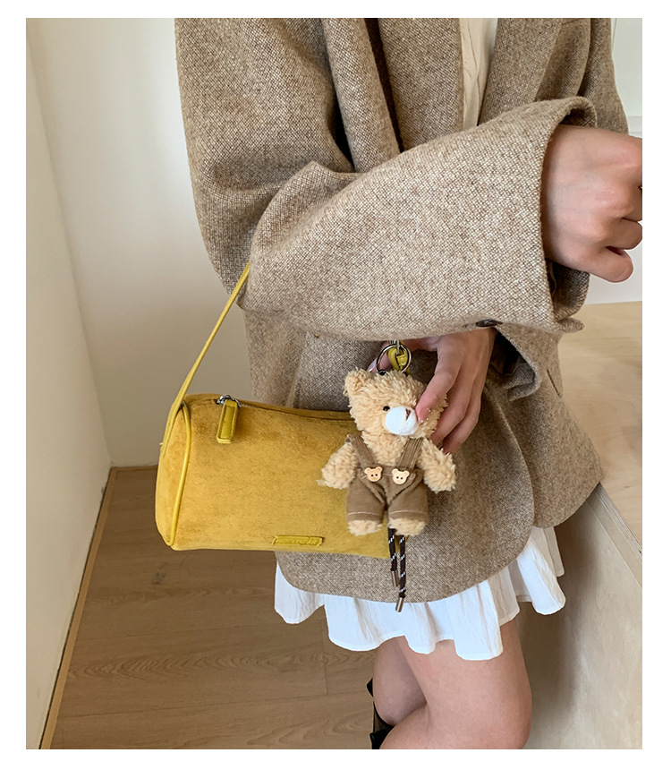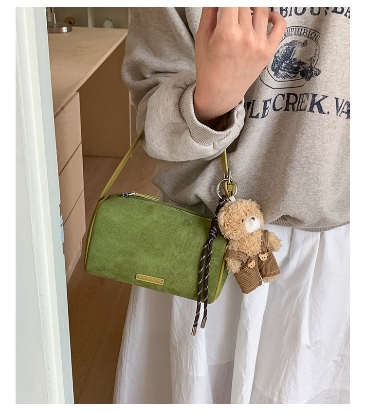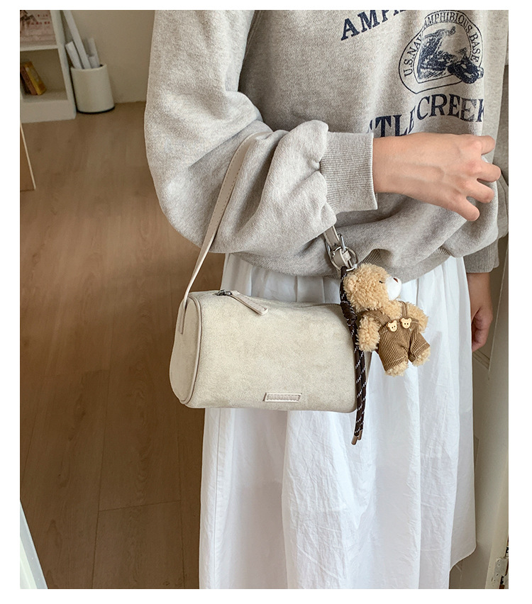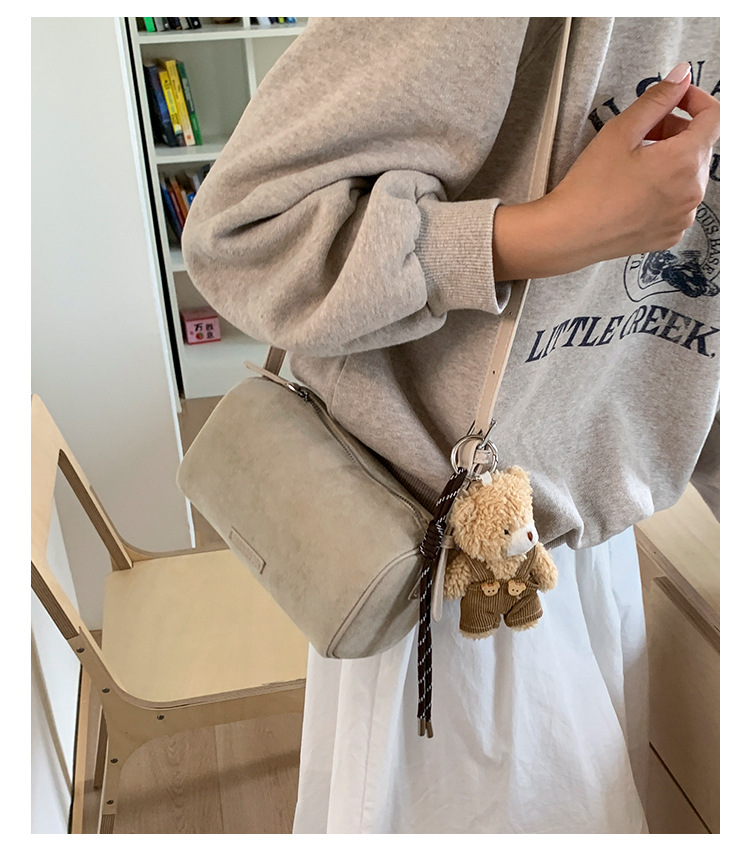 复古麂皮绒枕头包女2025秋冬新款时尚圆筒包百搭通勤单肩斜挎包