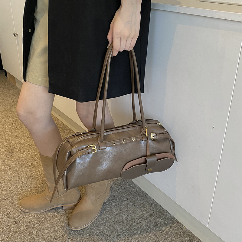 国境を越えたレトロな大衆がボーリングバッグを持っている女性2024秋の新しい腋の下バッグ大容量通勤バッグ