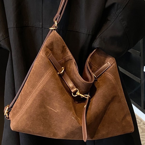 韓国版スエードのトートバッグ女性2025新型ファッションハンドバッグレトロ大容量シングルショルダーバッグ