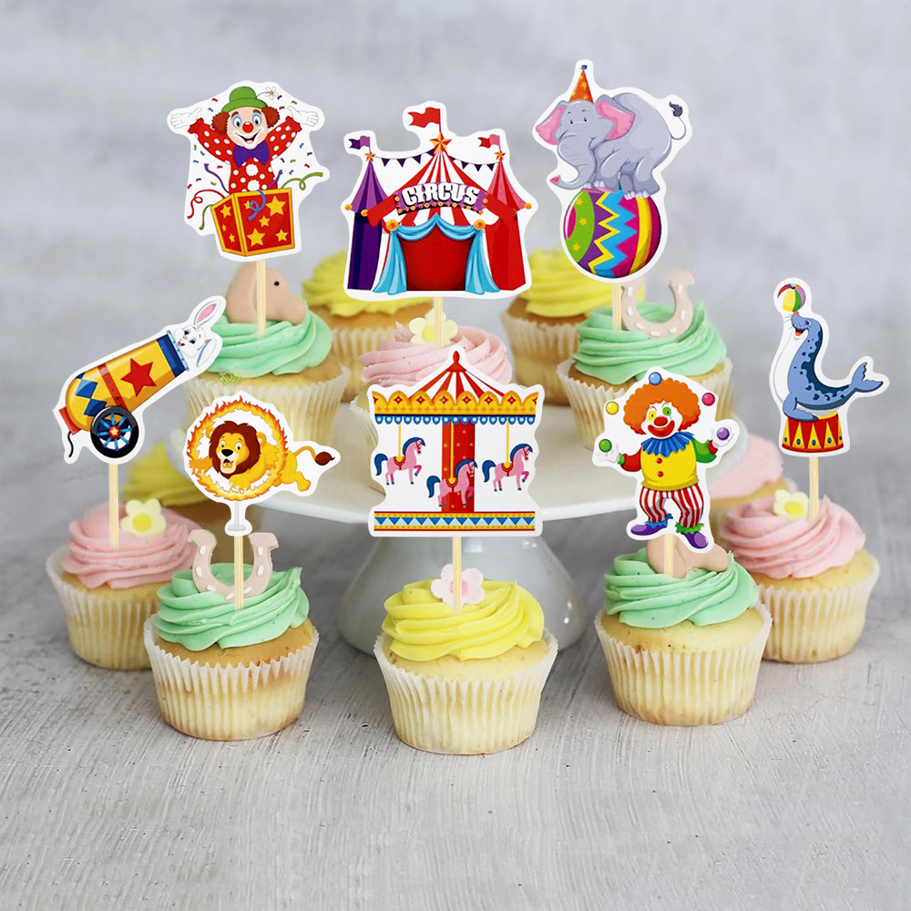 16 個のカーニバル誕生日パーティーケーキインサートカーニバルパーティーサーカステーマケーキデコレーション小さなインサート
