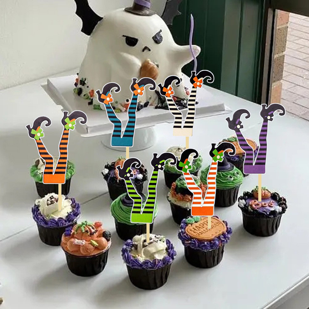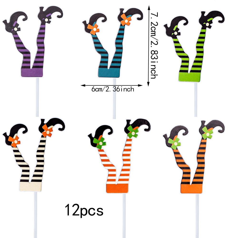 12 個の紙製ハロウィン魔女の足ハロウィンインサートは、ハロウィンのベーキングデコレーションに最適です。