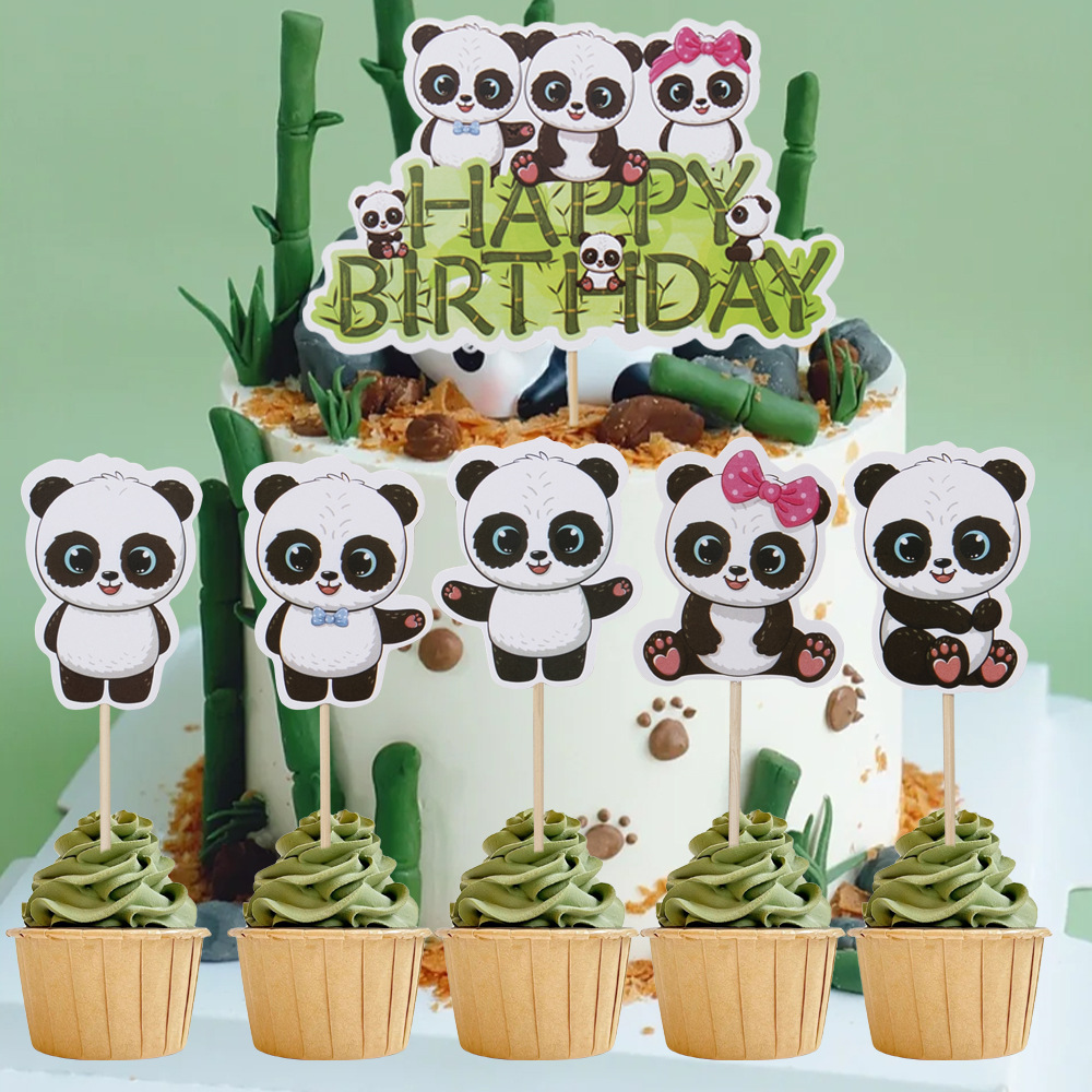 誕生日パーティーのベーキングデコレーションに最適な紙製パンダハッピーバースデーケーキインサート12個