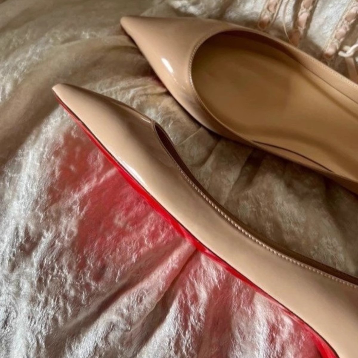 2025 新しいフレンチスタイルのポインテッドトゥヌードレッドソールフラットシューズ女性用パテントレザーインナー高さ増加浅い口ローヒールシューズ女性用