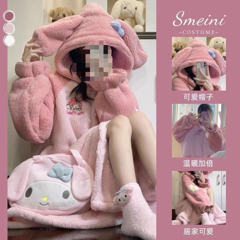 秋と冬のかわいいメロディーパジャマ、快適なベルベットのリナベルバスローブ、ホーム服、漫画アニメーションパジャマ