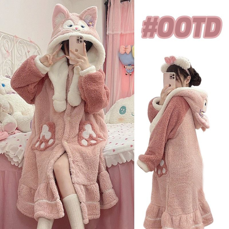ネット赤秋冬保温小狐寝衣女かわいい少女とベルベットの厚い学生の長いパジャマ女