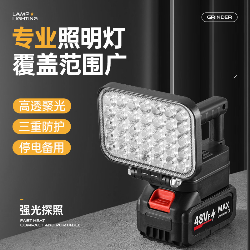跨境锂电池工作灯适用牧田锂电池户外照明LED维修灯散光泛光灯