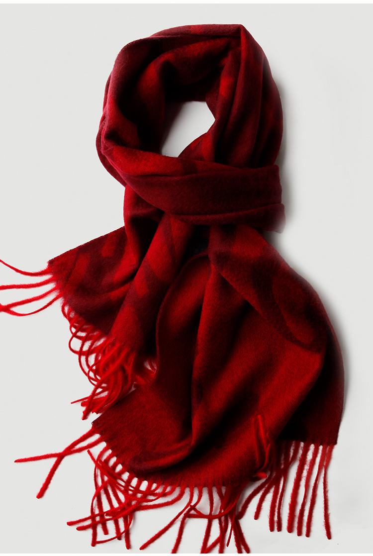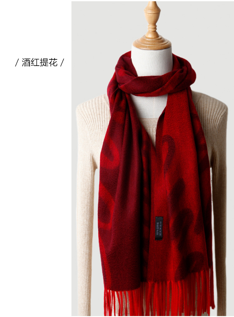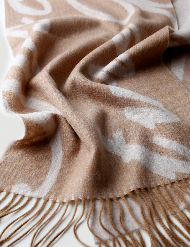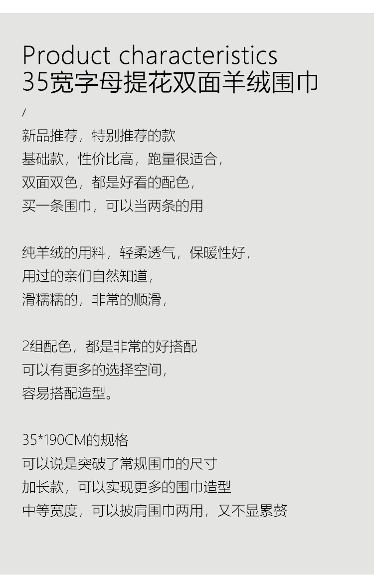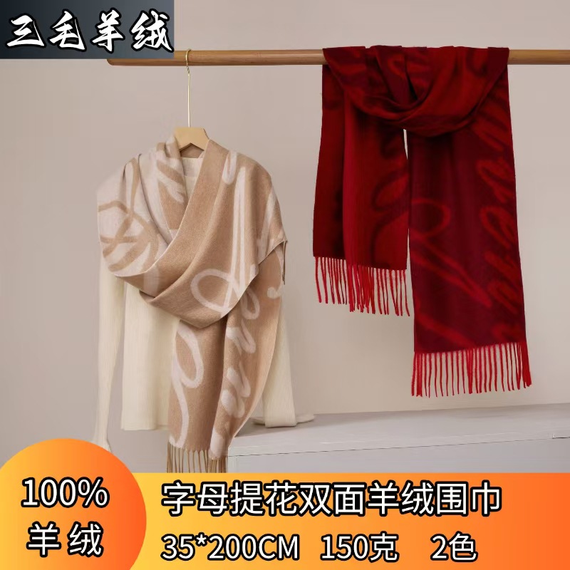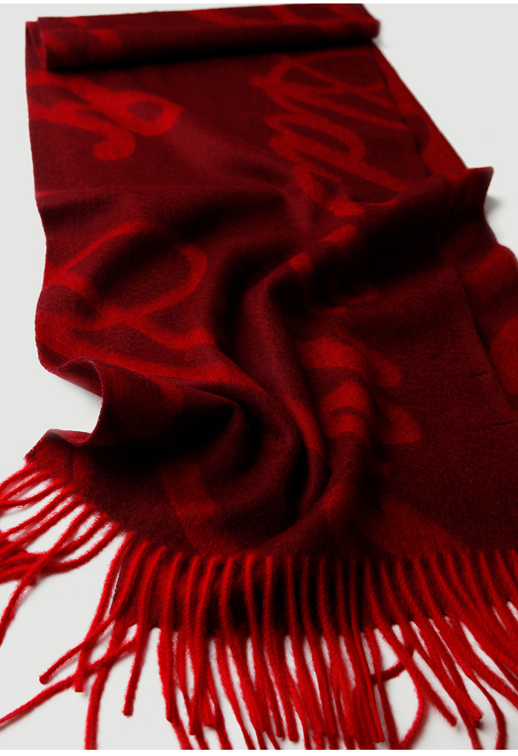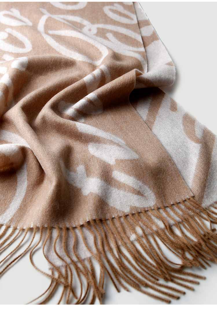 字母双面提花羊绒围巾流苏秋冬季加厚保暖女士女款cashmere内蒙古