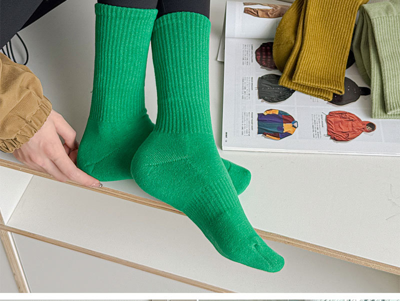 毛巾底袜子女秋冬季纯棉彩色纯色中筒袜运动情侣男袜加厚无骨袜