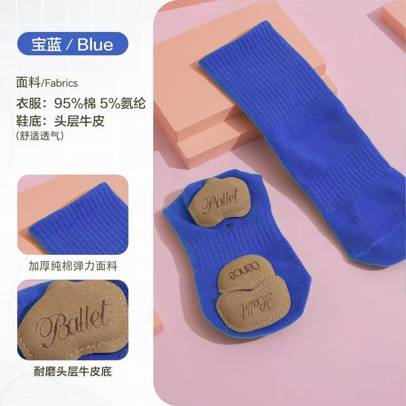 新型モダンダンス滑り止め綿靴下成人子供ヨガダンス専門ベルト皮底耐磨耗中筒訓練靴下