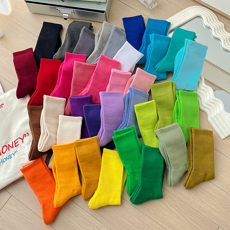 キャンディー色の靴下の女性の中筒の靴下のinsの潮の山の靴下の日本の精練の綿の春夏の長い筒の純色のスポーツの靴下の女性