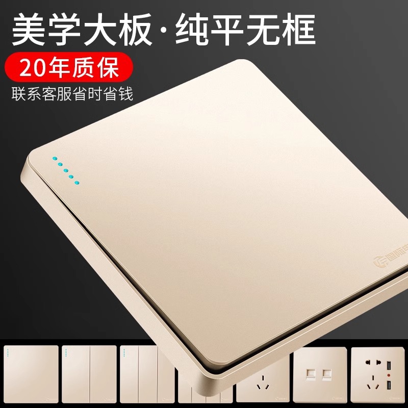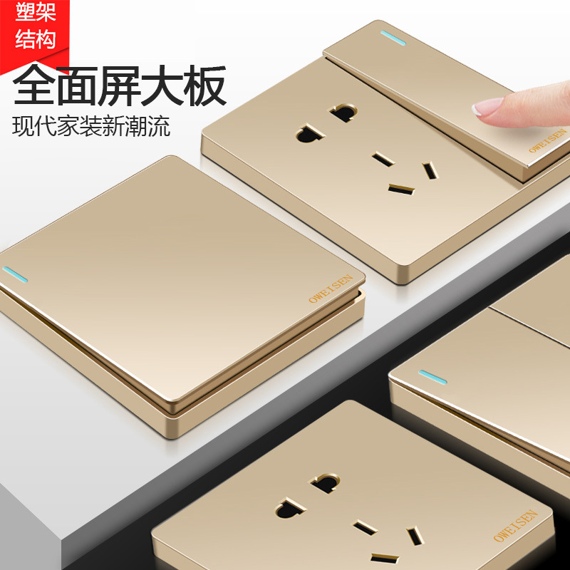 シャンパンゴールド86型スイッチコンセントパネル家庭用大型板暗装壁電源二三コンセント一開五穴