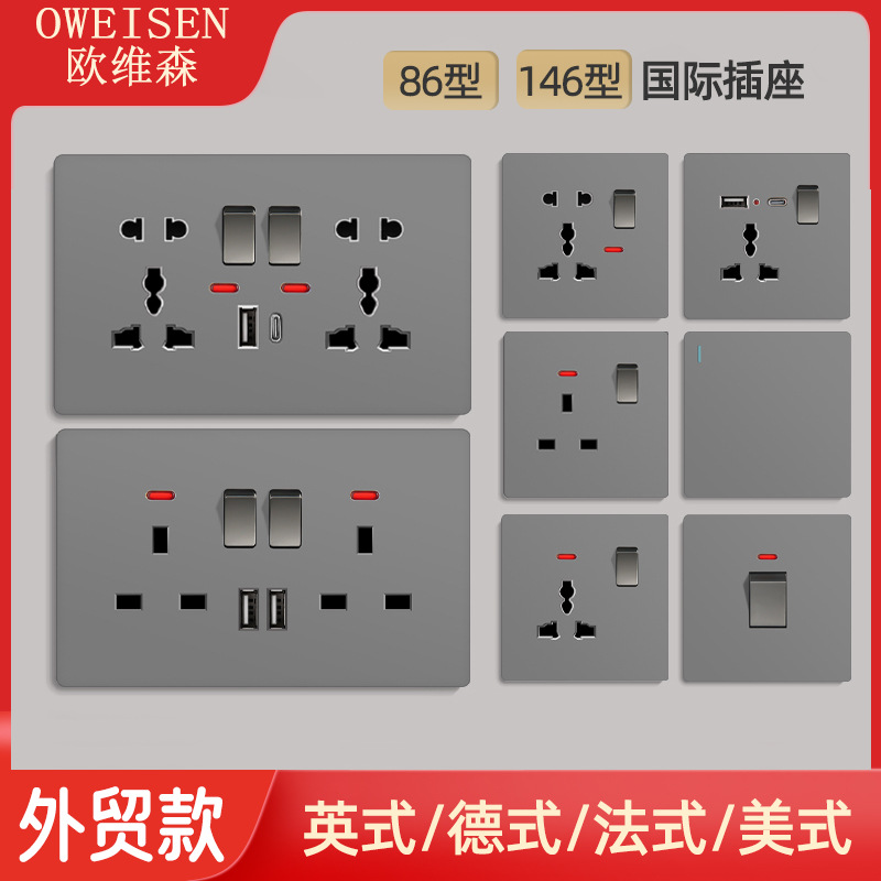 英標灰色スイッチソケット一開13aソケット多機能五穴USBヨーロッパ式フランスソケット2 5Aスイッチ