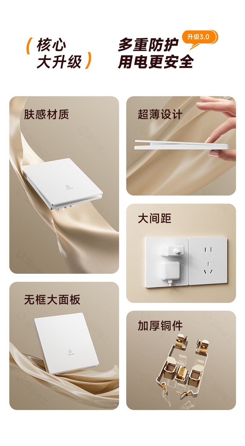 国际电工86型肤感哑光超薄白色开关插座面板家用暗装一开五孔双控