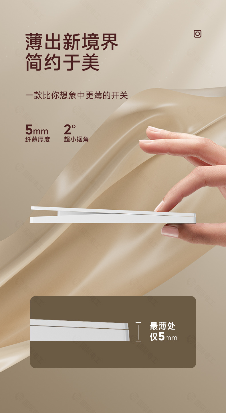 TEP国际电工超薄肤感白色开关家用86型超薄款五孔电源插座16A空调