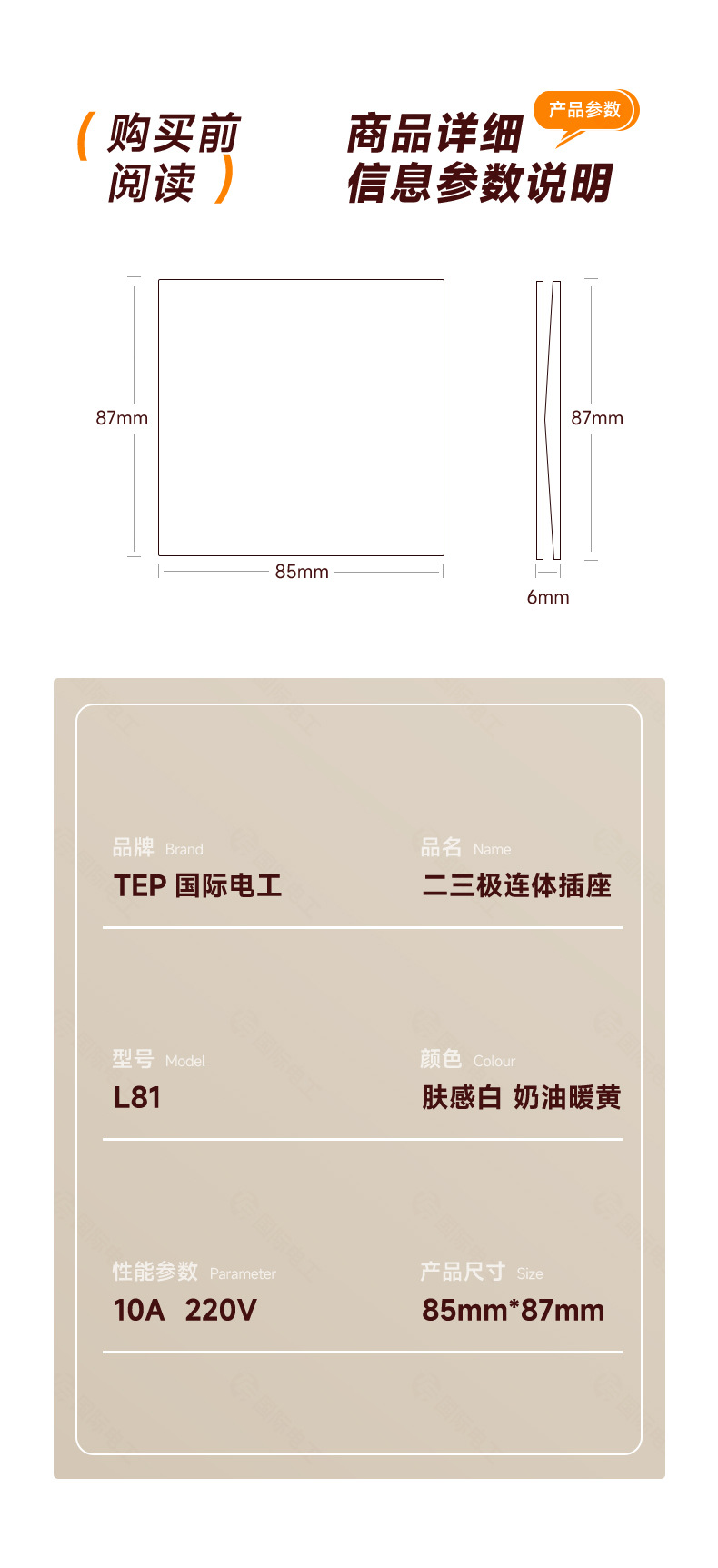 TEP国際電気技師G11クリーム風スイッチコンセント壁86型五穴串板超薄マットパネル卸売り