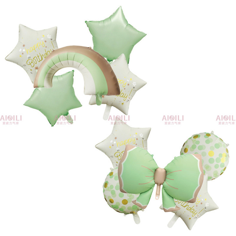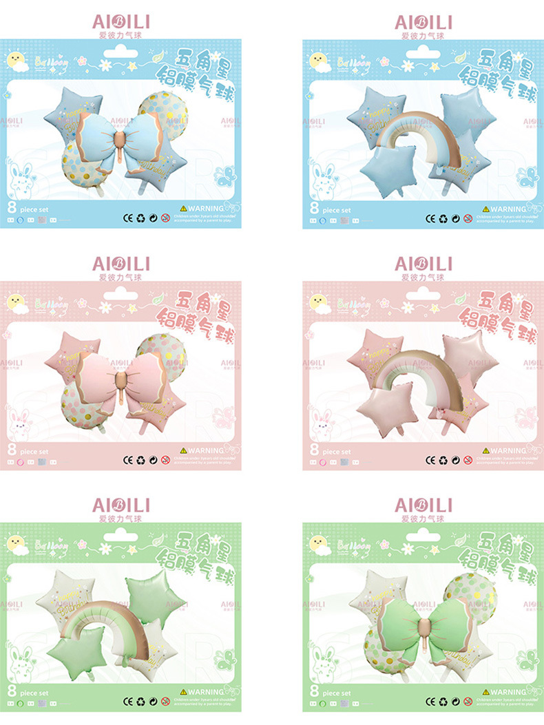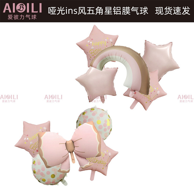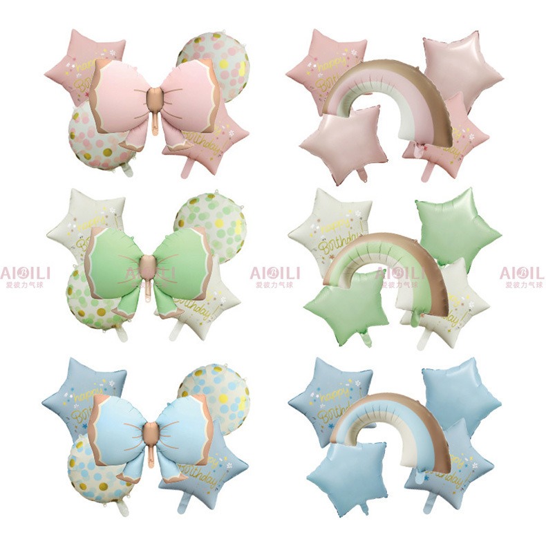 跨境哑光五角星铝膜气球生日派对装饰布置彩虹蝴蝶结套装气球套餐