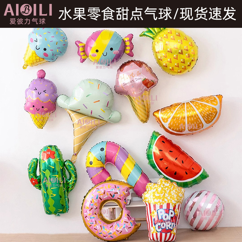 新しいフルーツスナックデザートバルーン漫画かわいいアルミフィルムバルーン子供の誕生日パーティーの装飾アレンジメントバルーン