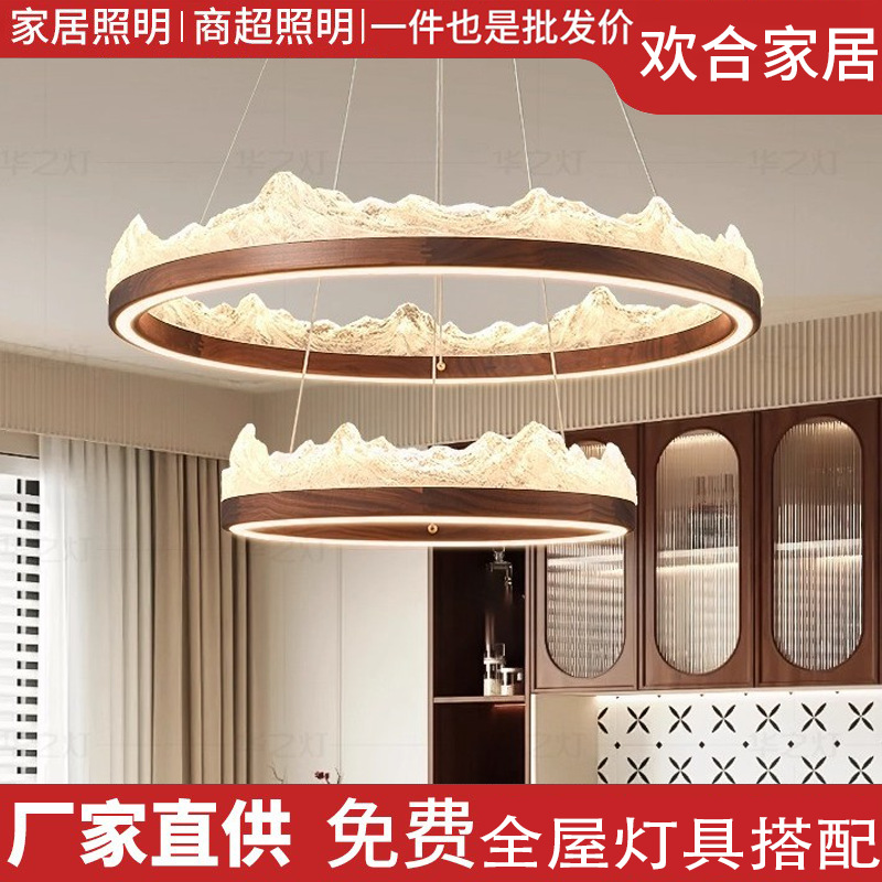 2025新款黑胡桃客厅吊灯高级感大气新中式大厅主灯餐厅茶室餐桌灯