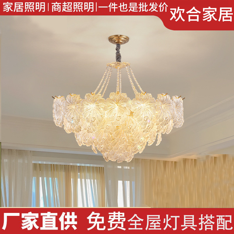 法式吊灯客厅大厅主灯轻奢水晶玻璃餐厅卧室高级感奶油风中山灯具