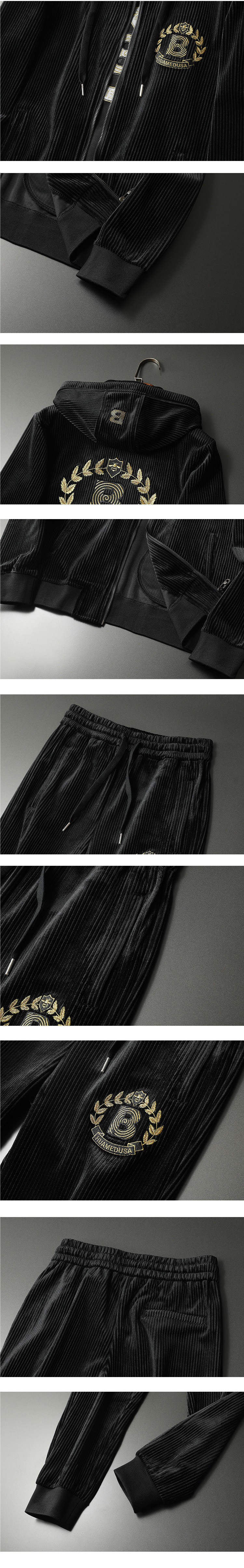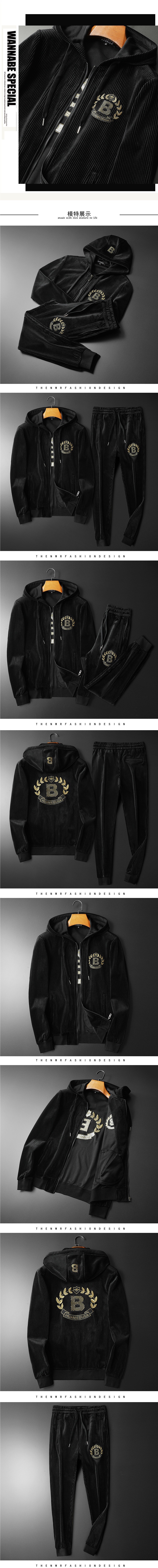 Z ヨーロッパステーションカジュアルスポーツフード付きスーツメンズゴールデンベルベットツーピースルーズ秋冬新作紳士服