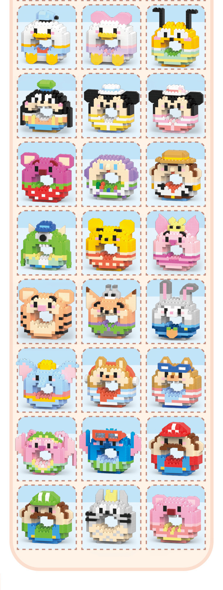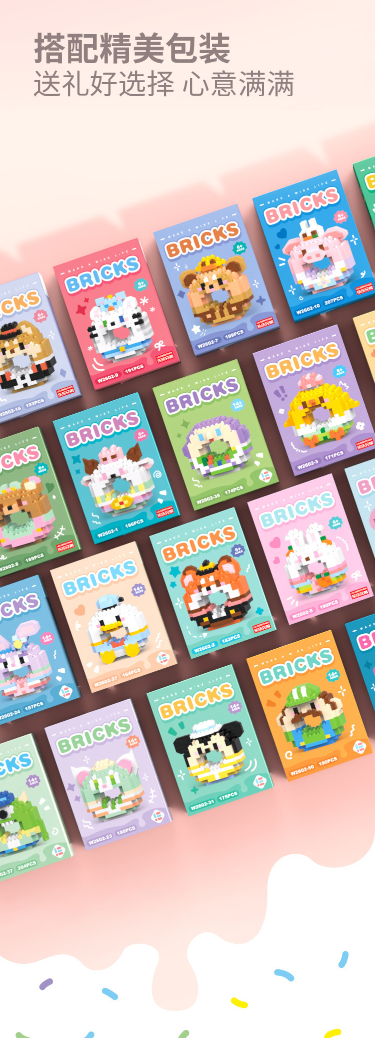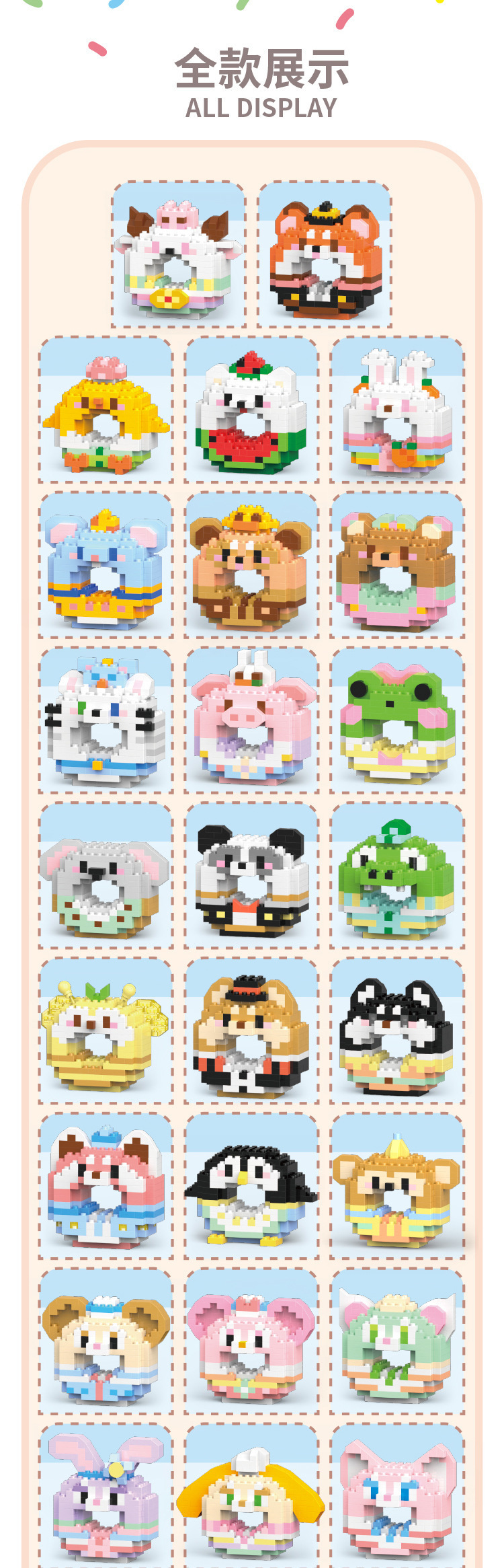 甜甜圈系列【随机1盒】,小动物系列【随机1盒】,公仔系列【随机1盒】,VV2602—01 甜甜圈咩咩小羊 196PCS【盒彩包装】,VV2602—02 甜甜圈绅士狐狸 183PCS【盒彩包装】,VV2602—03 甜甜圈萌菇小鸡 171PCS【盒彩包装】,VV2602—04 甜甜圈西瓜萨摩 174PCS【盒彩包装】,VV2602—05 甜甜圈乖巧兔兔 190PCS【盒彩包装】,VV2602—06 甜甜圈捣蛋鼠鼠 171PCS【盒彩包装】,VV2602—07 甜甜圈茸茸浣熊 199PCS【盒彩包装】,VV2602—08 甜甜圈淑女小熊 169PCS【盒彩包装】,VV2602—09 甜甜圈淘气猫咪 191PCS【盒彩包装】,VV2602—10 甜甜圈呆呆小猪 207PCS【盒彩包装】,VV2602—11 甜甜圈萌萌青蛙 177PCS【盒彩包装】,VV2602—12 甜甜圈奇异考拉 187PCS【盒彩包装】,VV2602—13 甜甜圈礼服熊猫 170PCS【盒彩包装】,VV2602—14 甜甜圈阳光鳄鱼 167PCS【盒彩包装】,VV2602—15 甜甜圈嗡嗡蜜蜂 173PCS【盒彩包装】,VV2602—16 甜甜圈酷酷柴犬 193PCS【盒彩包装】,VV2602—17 甜甜圈憨憨二哈 177PCS【盒彩包装】,VV2602—18 甜甜圈睡衣浣熊 202PCS【盒彩包装】,VV2602—19 甜甜圈呆呆企鹅 171PCS【盒彩包装】,VV2602—20 甜甜圈派对小猴 184PCS【盒彩包装】,VV2602—21 甜甜圈达达熊 203PCS【盒彩包装】,VV2602—22 甜甜圈玫玫熊 210PCS【盒彩包装】,VV2602—23_甜甜圈杰拉猫 185PCS【盒彩包装】,VV2602—24 甜甜圈黛黛兔 197PCS【盒彩包装】,VV2602—25 甜甜圈琦琦狗 207PCS【盒彩包装】,VV2602—26_甜甜圈贝贝狐 185PCS【盒彩包装】,VV2602—27 甜甜圈唐唐鸭 164PCS【盒彩包装】,VV2602—28 甜甜圈黛黛鸭 161PCS【盒彩包装】,VV2602—29 甜甜圈黄黄狗 153PCS【盒彩包装】,VV2602—30 甜甜圈飞飞狗 197PCS【盒彩包装】,VV2602—31 甜甜圈奇奇鼠 175PCS【盒彩包装】,VV2602—32 甜甜圈妮妮鼠 176PCS【盒彩包装】,VV2602—33 甜甜圈莓莓熊 172PCS【盒彩包装】,VV2602—35 甜甜圈太空芭斯 174PCS【盒彩包装】,VV2602—36 甜甜圈牛仔迪 184PCS【盒彩包装】,VV2602—37 甜甜圈大眼崽 204PCS【盒彩包装】,VV2602—38 甜甜圈维维熊 162PCS【盒彩包装】,VV2602—39 甜甜圈杰杰猪 178PCS【盒彩包装】,VV2602—40 甜甜圈弹跳虎 177PCS【盒彩包装】,VV2602—41 甜甜圈尼尼狐 201PCS【盒彩包装】,VV2602—42 甜甜圈朱朱兔 187PCS【盒彩包装】,VV2602—43 甜甜圈大耳象 166PCS【盒彩包装】,VV2602—45 甜甜圈松鼠奇 183PCS【盒彩包装】,VV2602—46 甜甜圈松鼠蒂 180PCS【盒彩包装】,VV2602—47 甜甜圈安琪儿 251PCS【盒彩包装】,VV2602—48 甜甜圈史迪迪 238PCS【盒彩包装】,VV2602—49 甜甜圈玛丽红 182PCS【盒彩包装】,VV2602—50 甜甜圈玛丽绿 190PCS【盒彩包装】,VV2602—53 甜甜圈肥猫 170PCS【盒彩包装】,VV2602—54 甜甜圈大牙海狸 156PCS【盒彩包装】,W1502—01狮子148PCS,W1502—02山羊138PCS,W1502—03小鸡124PCS,W1502—04小象142PCS,W1502—05仓鼠148PCS,W1502—06企鹅148PCS,W1502—07小马130PCS,W1502—08鳄鱼141PCS,W1502—09犀牛131PCS,W1502—10小鹿128PCS,W1502—11小熊153PCS,W1502—12 老虎150PCS,001—迷你达达熊 181PCS【彩盒装】,002—迷你玫玫熊 189PCS【彩盒装】,003—迷你杰拉猫 188PCS【彩盒装】,004—迷你黛黛兔 187PCS【彩盒装】,005—迷你琦琦狗 193PCS【彩盒装】,006—迷你贝贝狐 214PCS【彩盒装】,007—迷你唐唐鸭135PCS【彩盒装】,008—迷你黛黛鸭 137PCS 【彩盒装】,009—迷你黄黄狗 176PCS【彩盒装】,010—迷你飞飞狗 176PCS【彩盒装】,011—迷你奇奇鼠 173PCS【彩盒装】,012—迷你妮妮鼠 185PCS【彩盒装】,013—迷你玉桂狗 144PCS【彩盒装】,014—迷你恰恰狗 128PCS【彩盒装】,015—迷你美乐兔 145PCS【彩盒装】,016—迷你库库兔 151PCS【彩盒装】,017—迷你KT猫粉 146PCS【彩盒装】,018—迷你KT蓝粉 146PCS【彩盒装】,019—迷你维维熊 144PCS【彩盒装】,020—迷你杰杰猪 135PCS【彩盒装】,021—迷你弹跳虎 170PCS【彩盒装】,022—迷你竖耳驴 180PCS【彩盒装】,023—迷你月亮兔 199PCS 【彩盒装】,024—迷你小小兔 210PCS【彩盒装】,025—迷你灰灰姑娘 162PCS【彩盒装】,026—迷你艾丽儿 170PCS【彩盒装】,027—迷你雪白公主 146PCS【彩盒装】,028—迷你爱莎公主 187PCS【彩盒装】,029—迷你尼尼狐 147PCS【彩盒装】,030—迷你朱朱兔 164PCS【彩盒装】,031—迷你提提鼠 154PCS【彩盒装】,032—迷你大耳象 156PCS【彩盒装】,033—迷你辛辛狮 135PCS【彩盒装】,034—迷你嘭嘭猪 159PCS【彩盒装】,035—迷你松鼠奇 167PCS【彩盒装】,036—迷你松鼠蒂 166PCS【彩盒装】,037—迷你玛丽红 162PCS【彩盒装】,038—迷你玛丽绿 164PCS【彩盒装】,039—迷你安琪儿 197PCS【彩盒装】,040—迷你史迪迪 161PCS【彩盒装】,041—迷你玫熊 151PCS【彩盒装】,042—迷你三眼崽 178PCS【彩盒装】,043—迷你螃蟹 149PCS【彩盒装】,044—迷你海绵 202PCS【彩盒装】,045—迷你海星 166PCS【彩盒装】,046—迷你章鱼 145PCS【彩盒装】,047—迷你达达鸭 176PCS【彩盒装】,048—迷你比咔丘 178PCS【彩盒装】