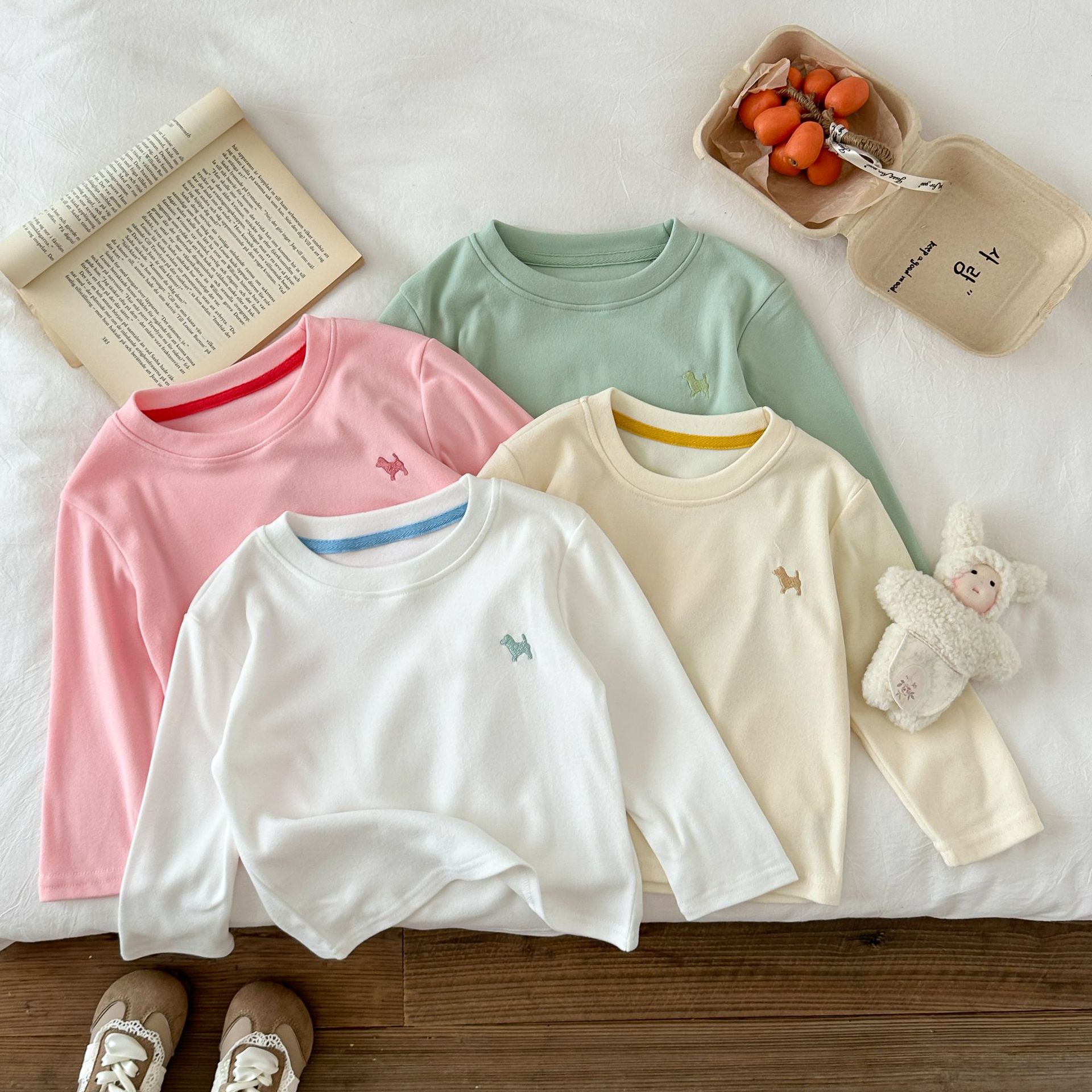 2025年女の子秋服新作子供用デロン素材インナー服おしゃれで万能な長袖トップス暖かい服
