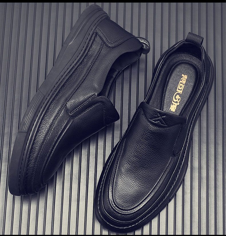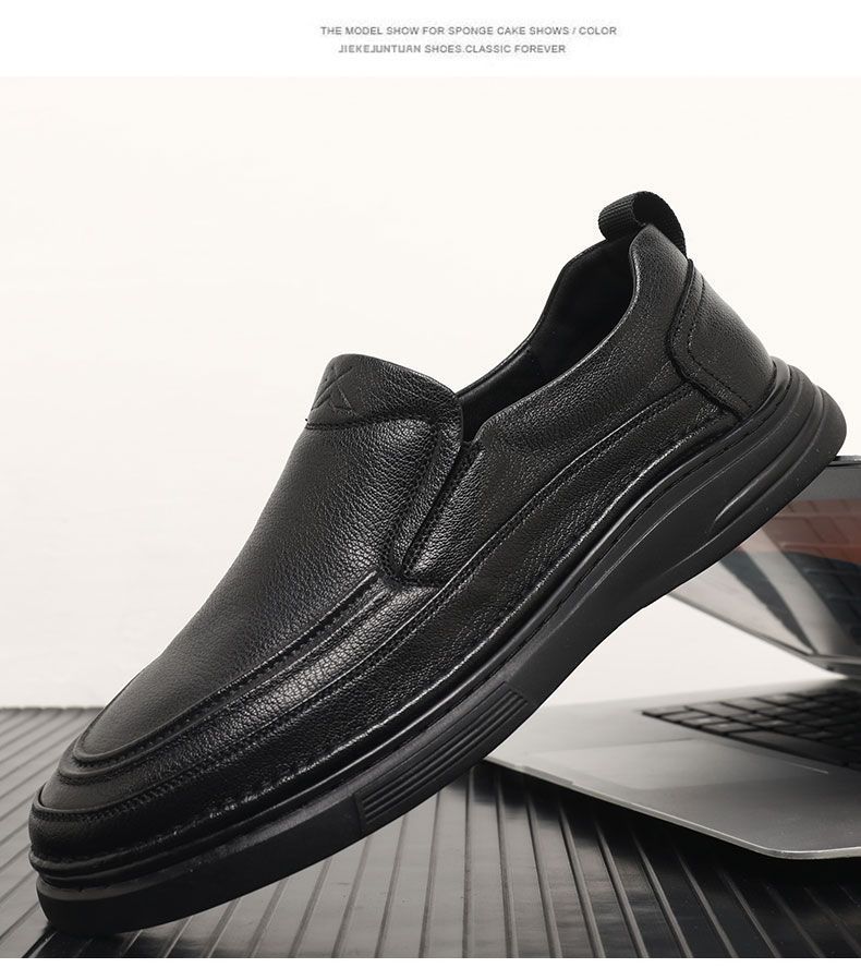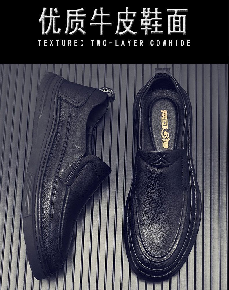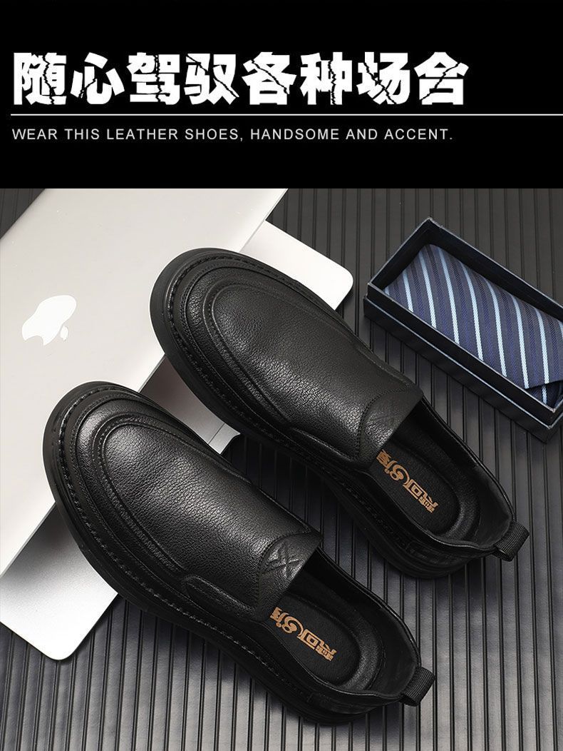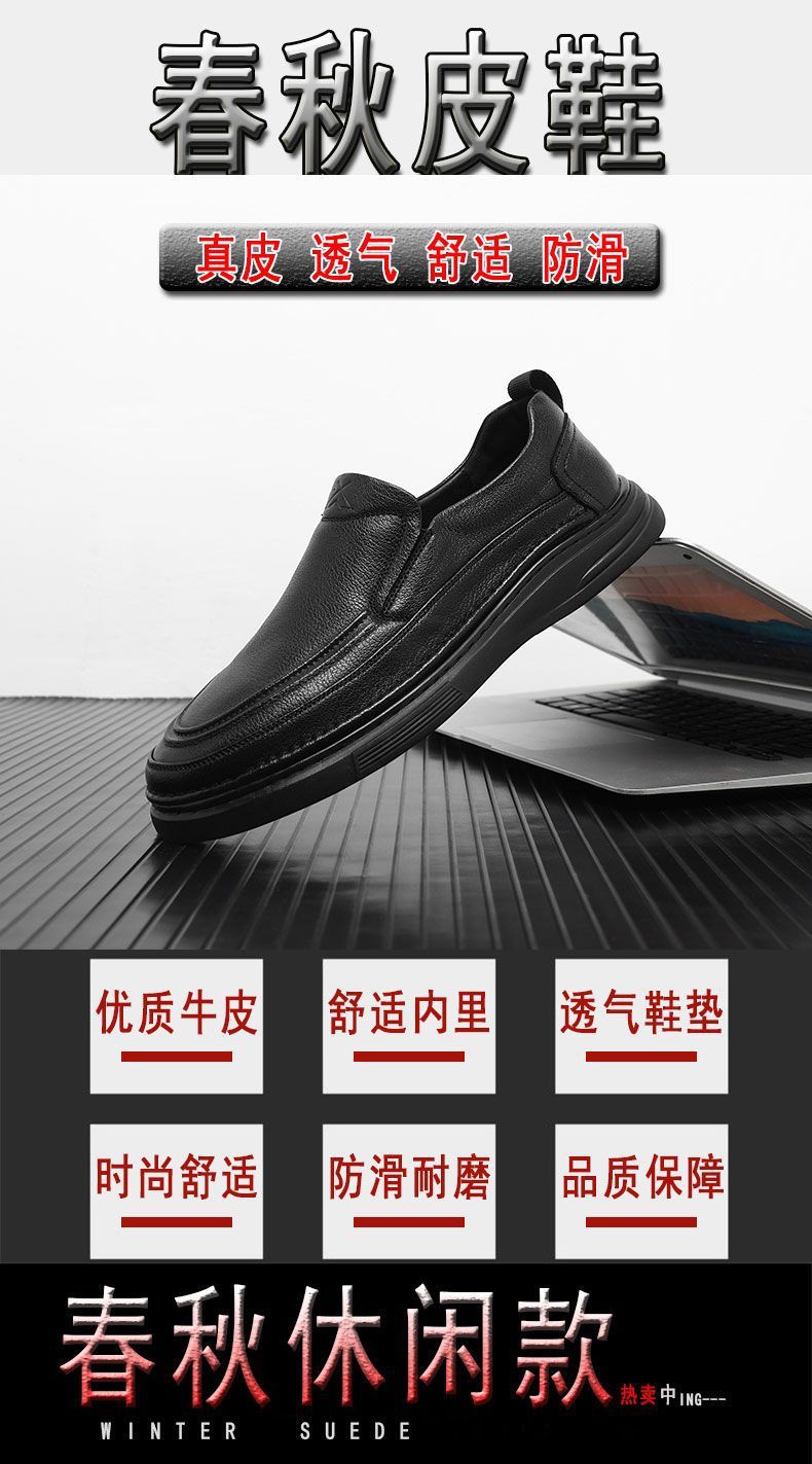 男士休闲皮鞋春季防滑软底软面爸爸鞋一脚蹬真皮外穿豆豆鞋单鞋