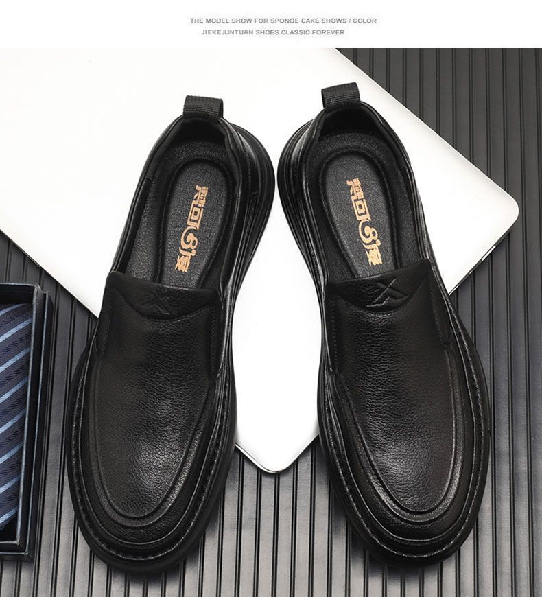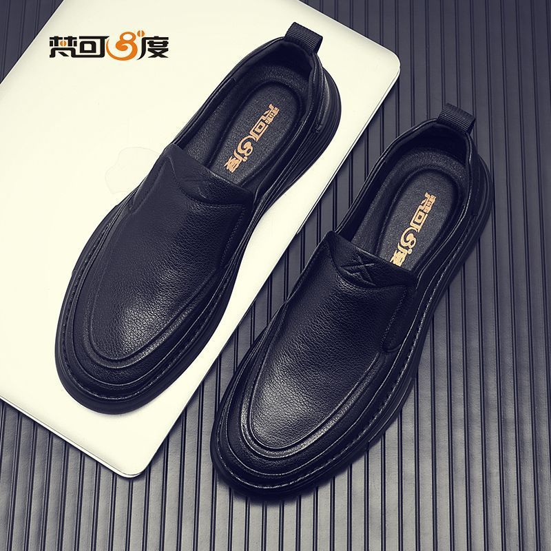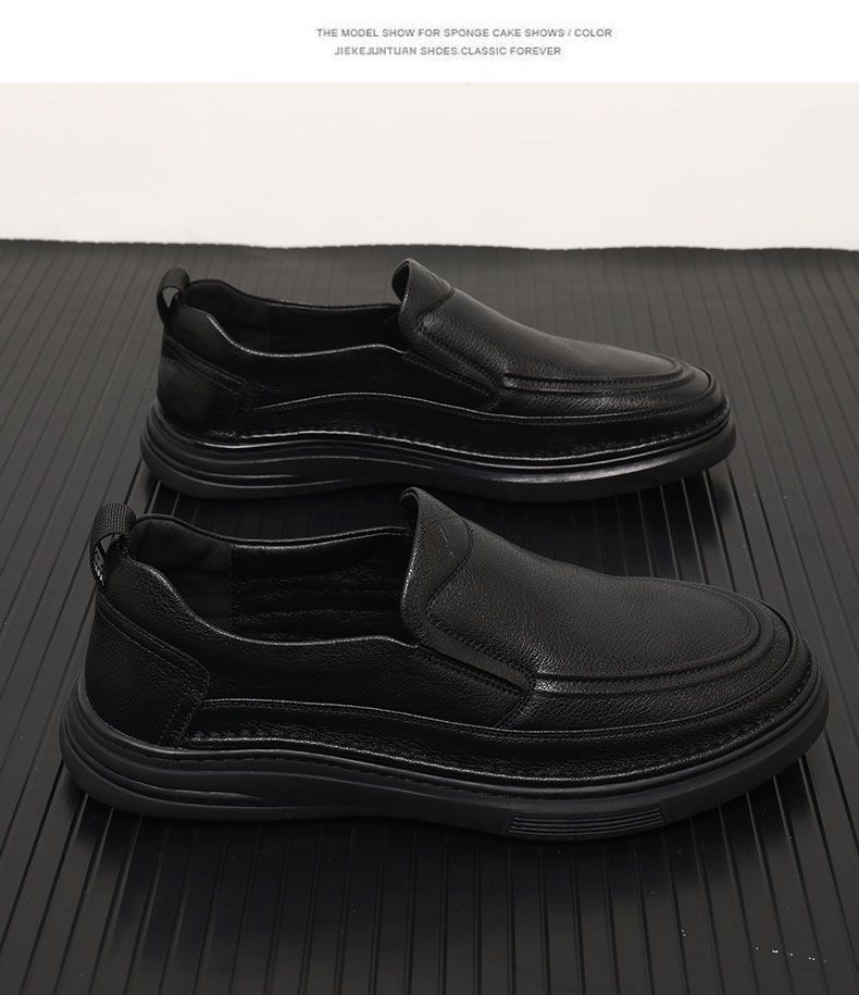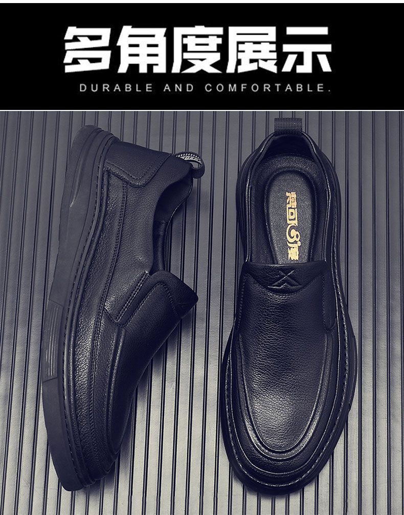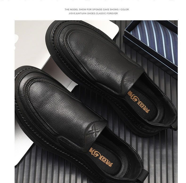男士休闲皮鞋春季防滑软底软面爸爸鞋一脚蹬真皮外穿豆豆鞋单鞋