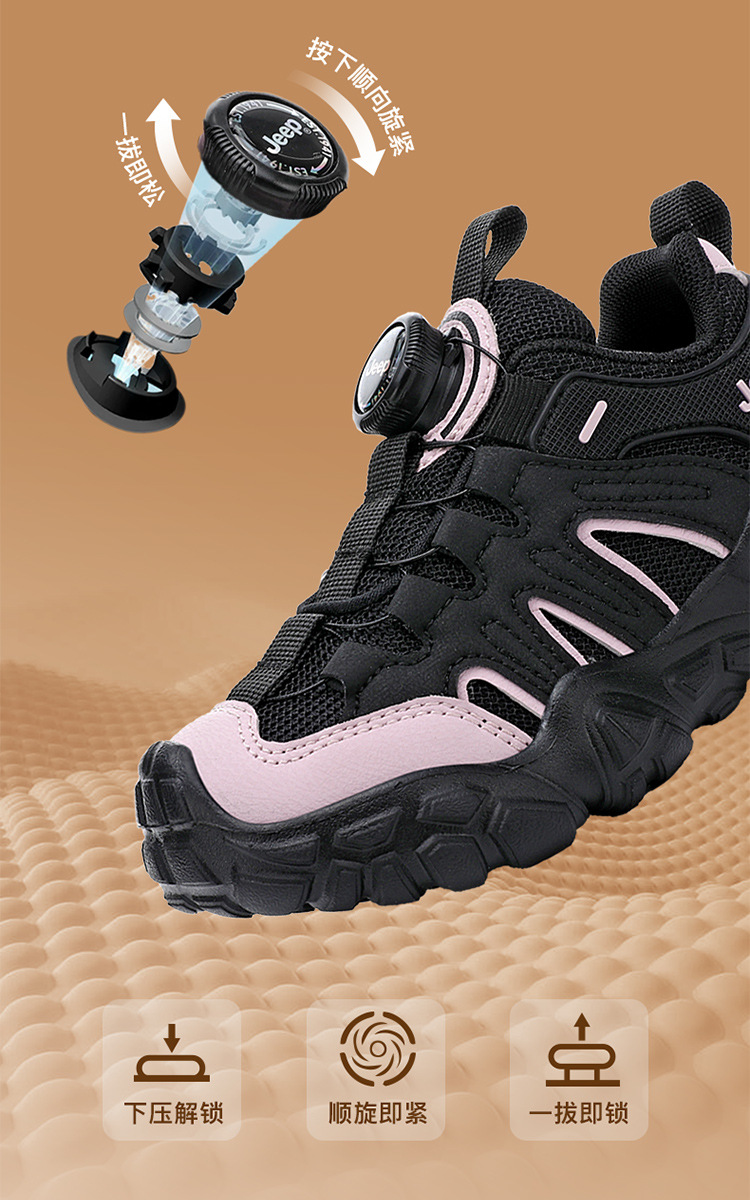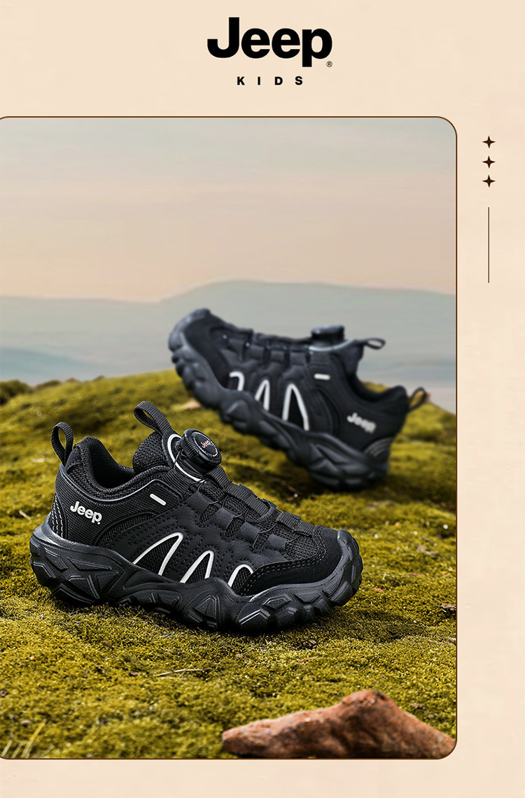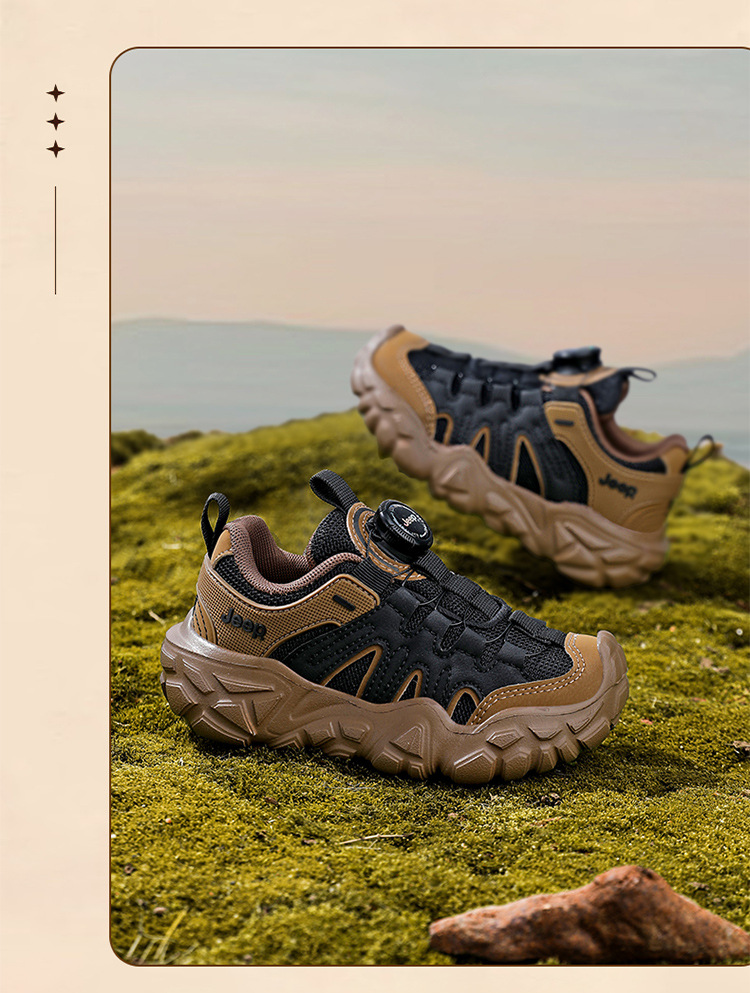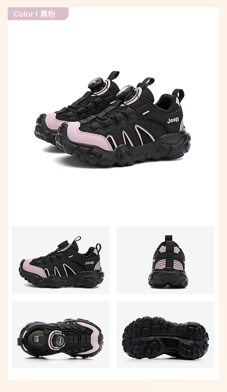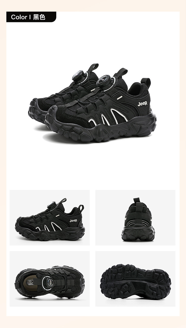 Jeep運動靴男の子6-12歳黒武士アウトドアランニング靴軽い底回転ボタン女の子カジュアル靴