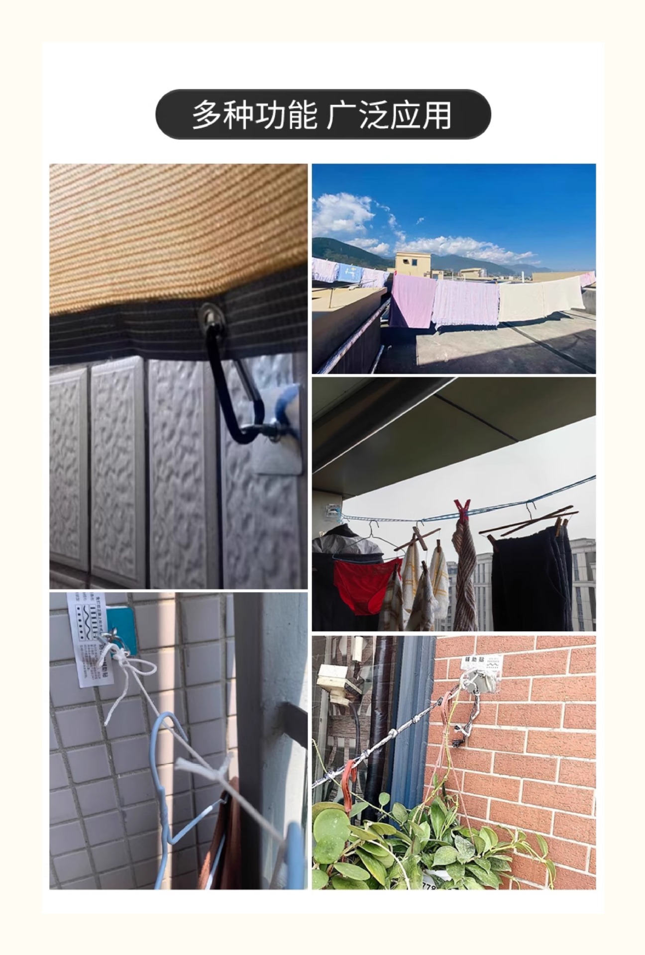 屋外固定物干し日焼け止めネット粘着フックラフセメント壁ストラップネイルフリー接着剤フリーパンチングリングフック