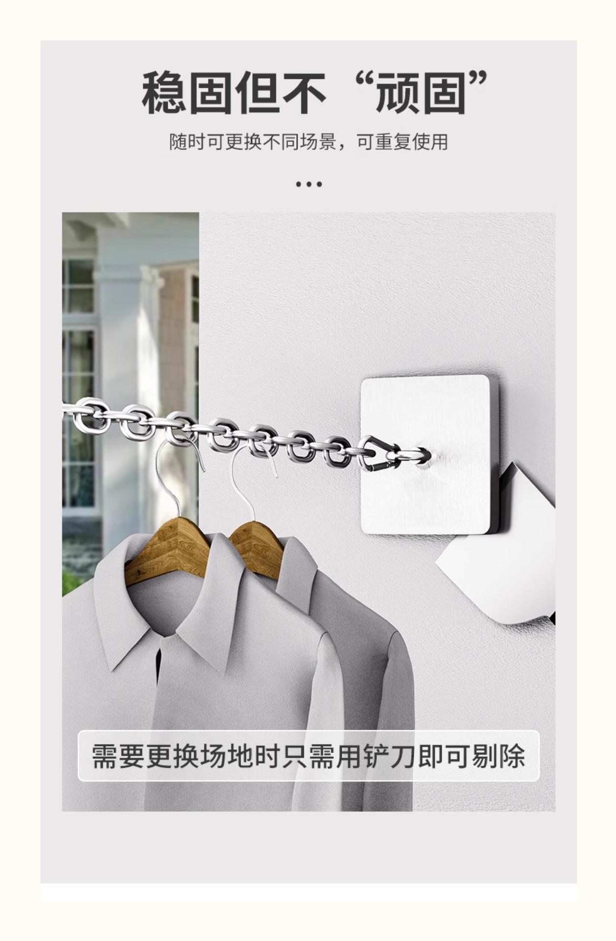 屋外セメント壁用フックフック、パンチフリー固定具、物干しロープ、強力な耐荷重ステンレス鋼リング粘着フック