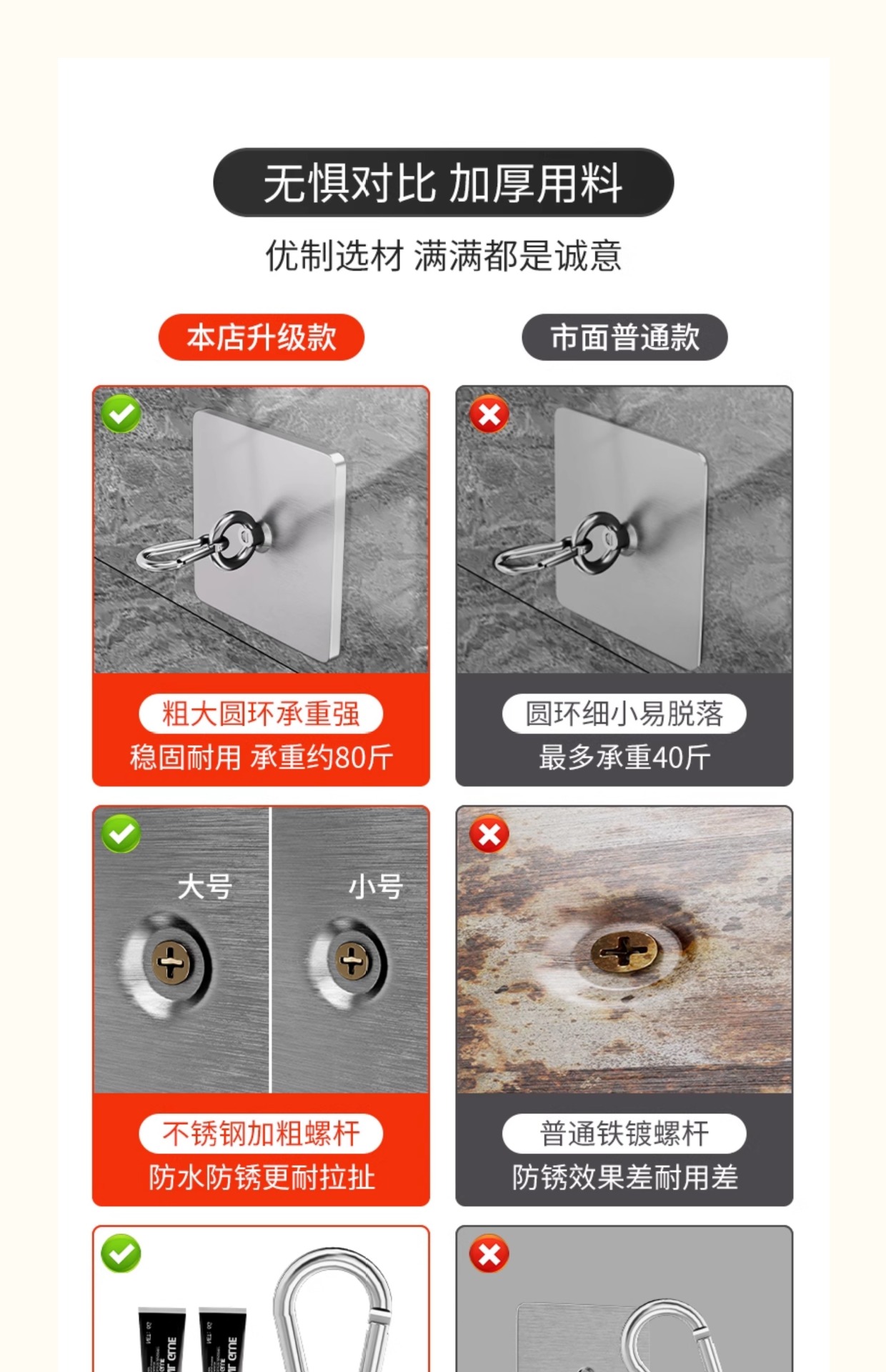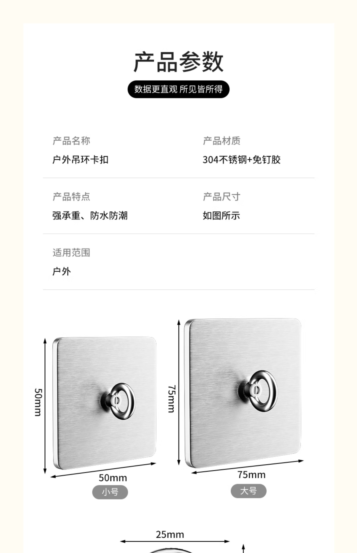 颜色 大号7x7.5不锈钢粘钩【2个装/户外专用】,中号5x5.5不锈钢粘钩【2个装/户外专用】
