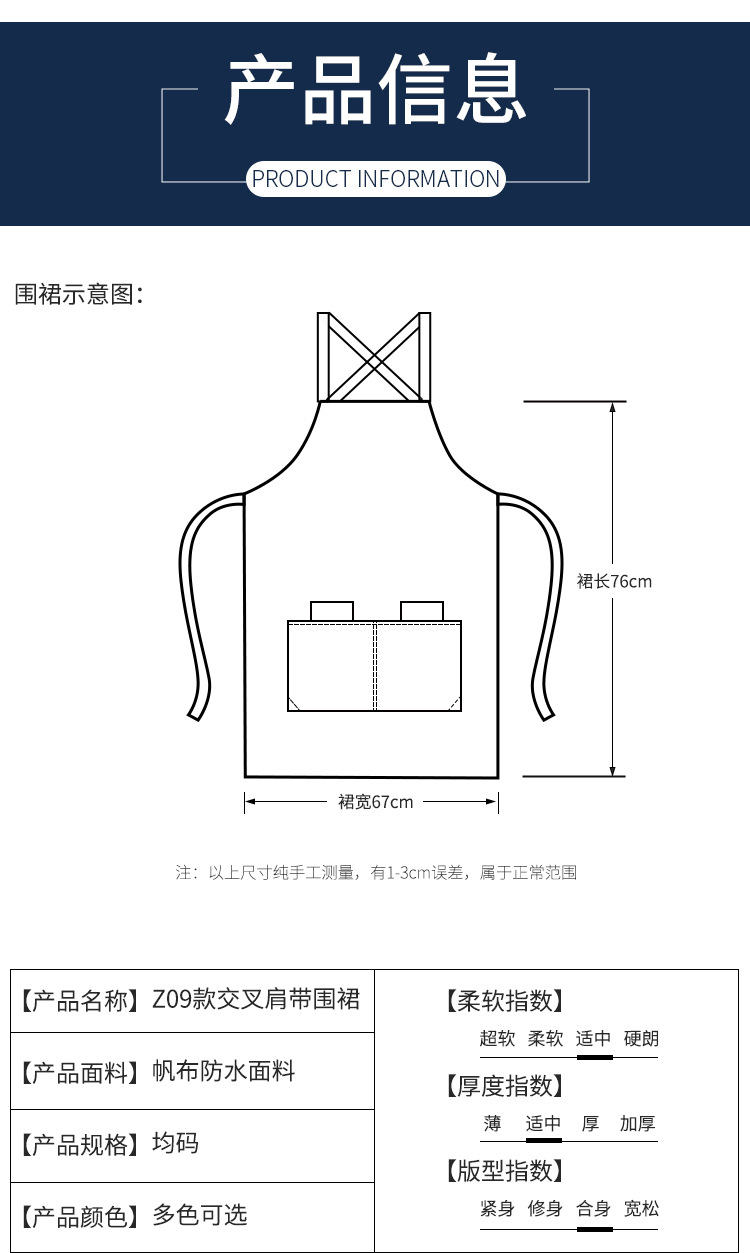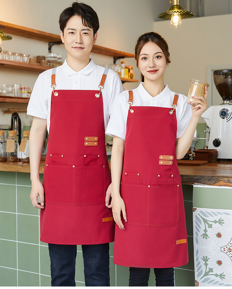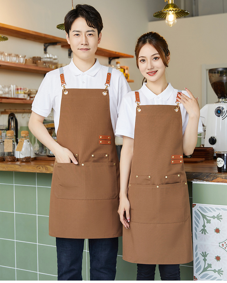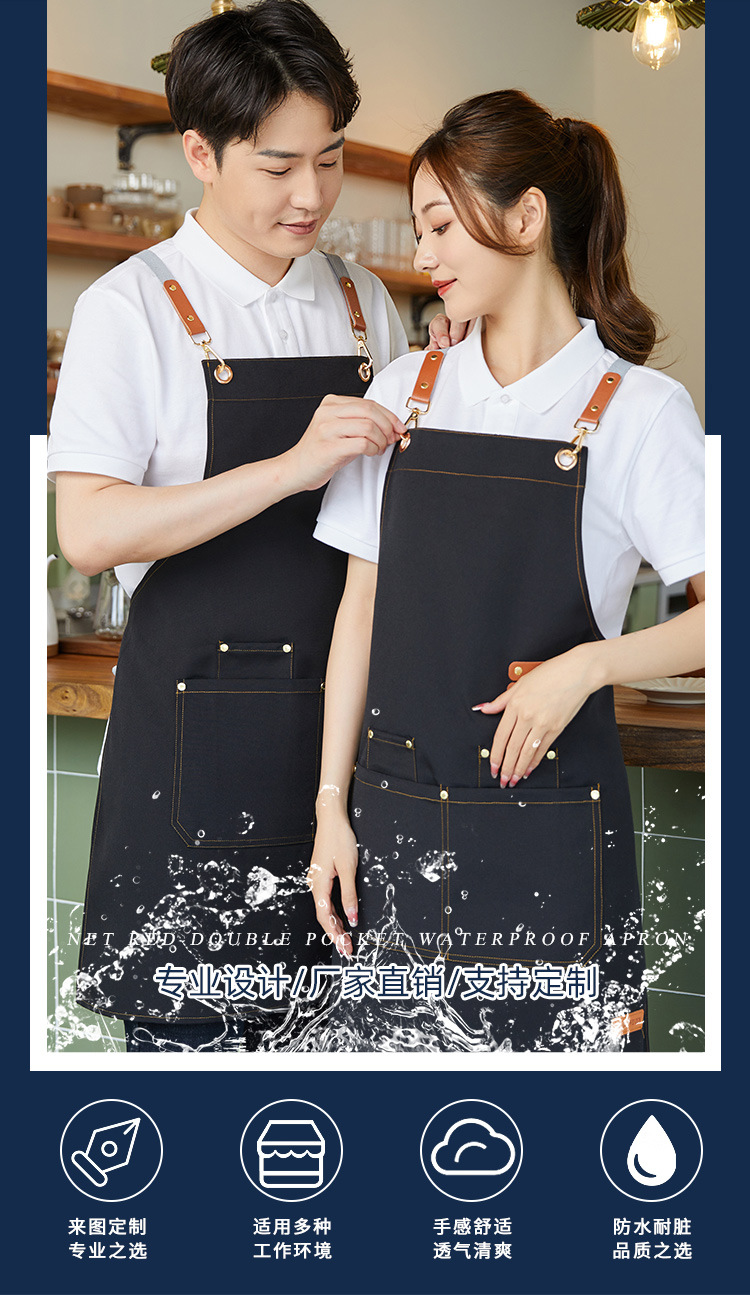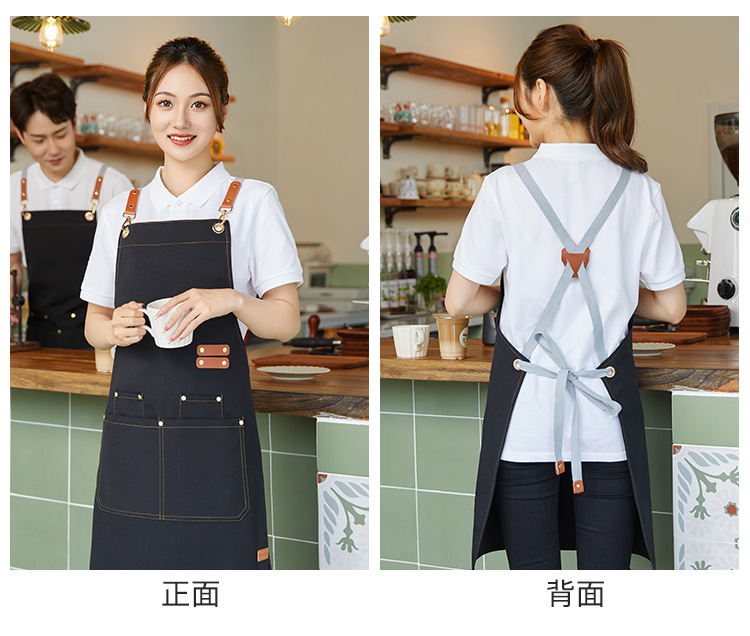 帆布防水围裙厨房家用餐饮专用定制logo印字咖啡店工作服工装男女