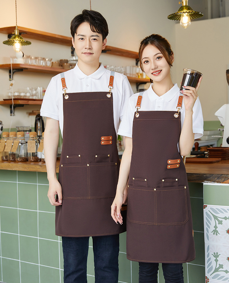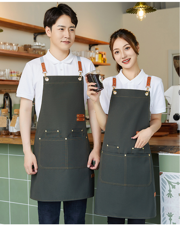 キャンバスエプロンロゴ印字飲食専用ミルクティー店花屋コーヒーアイロン師防水作業服女性
