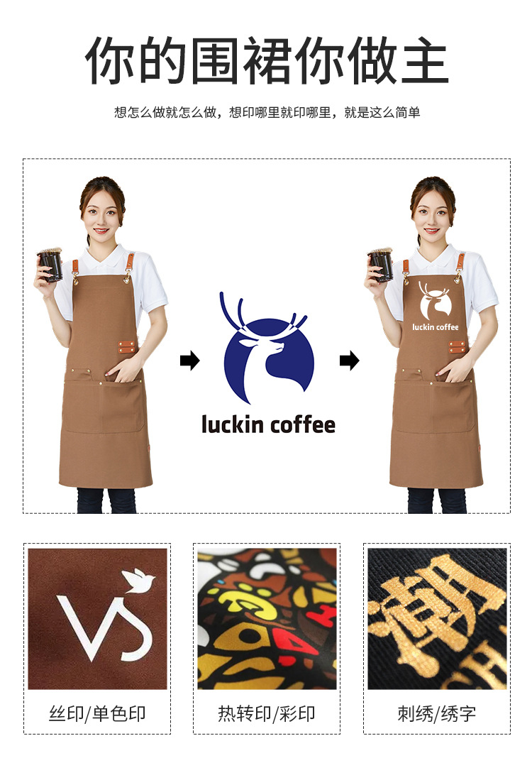 エプロン印字卸売り購買商品広告ロゴ宣伝開業オックスフォード桃皮パイル制服尼プレゼントが腰を囲んでいる
