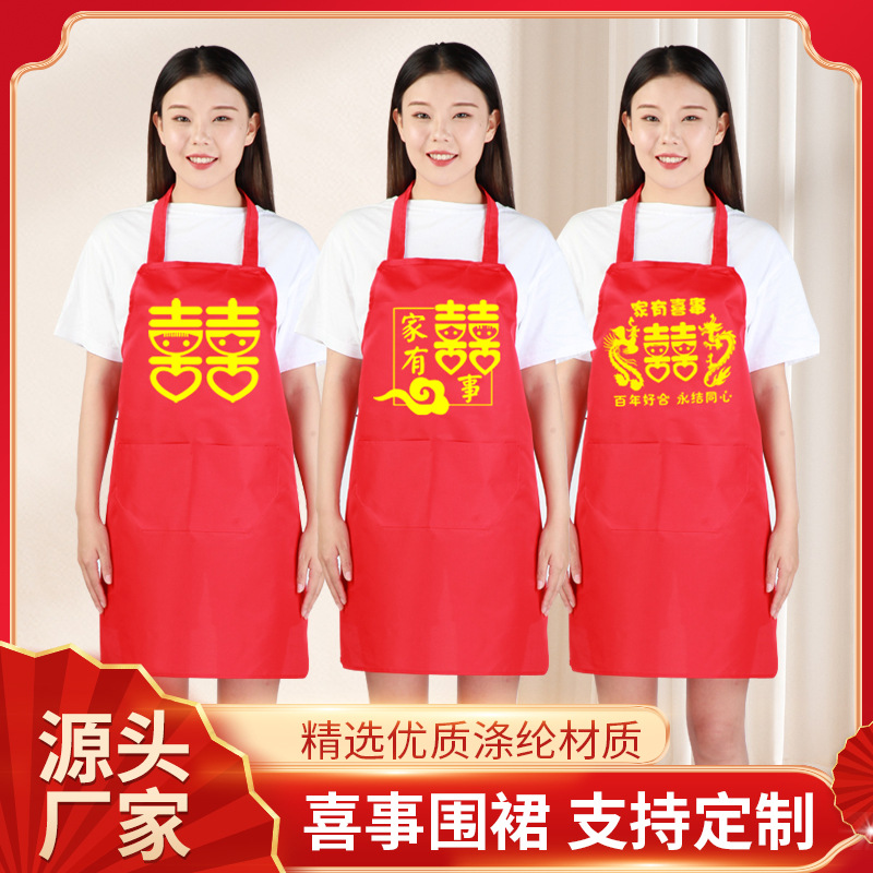 お祝いの赤い結婚エプロン家にはおめでたい結婚式の袖があります。
