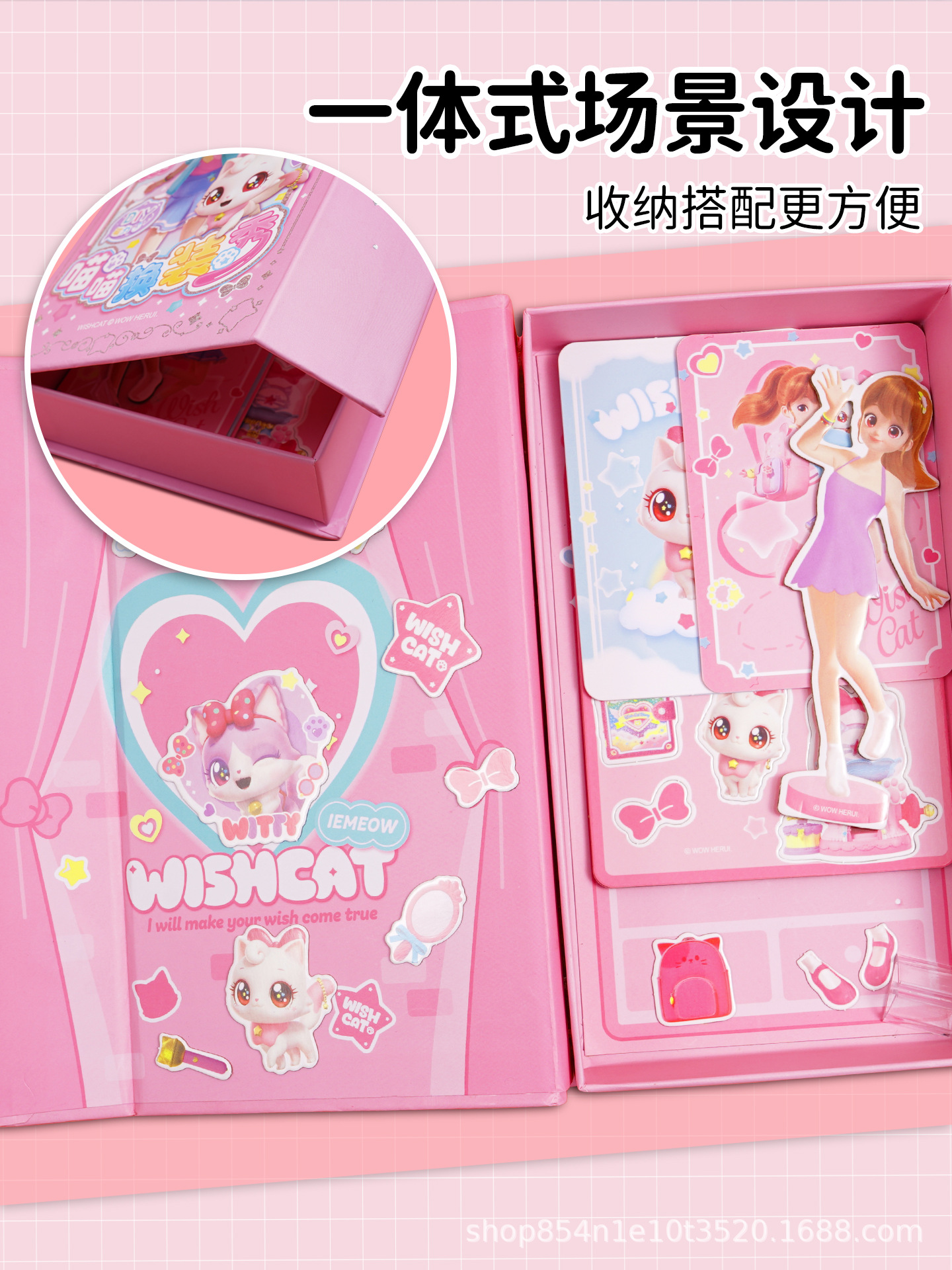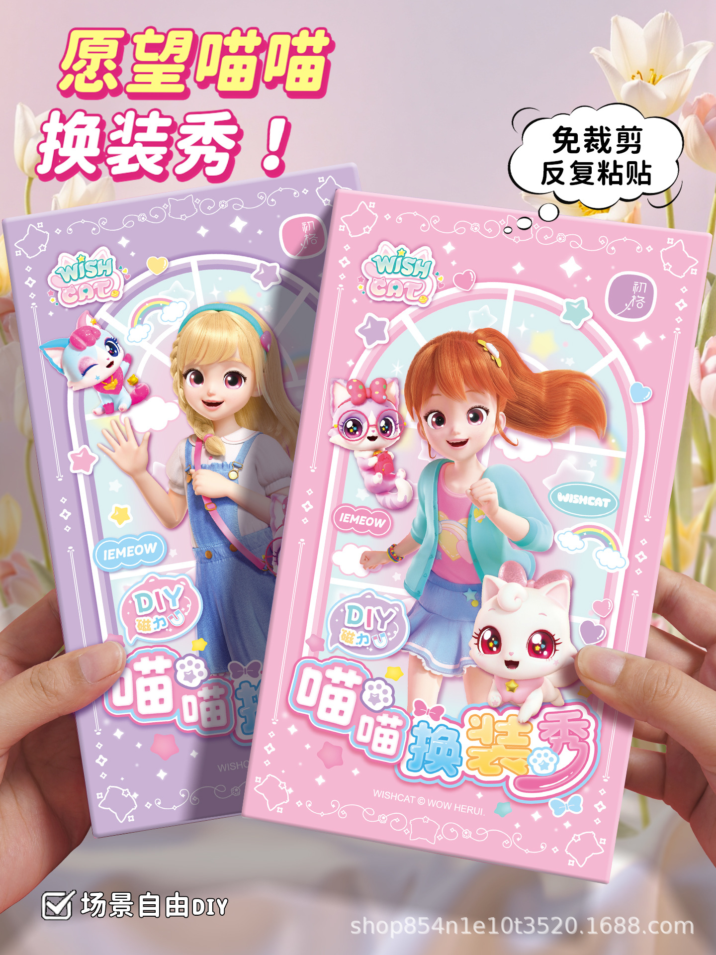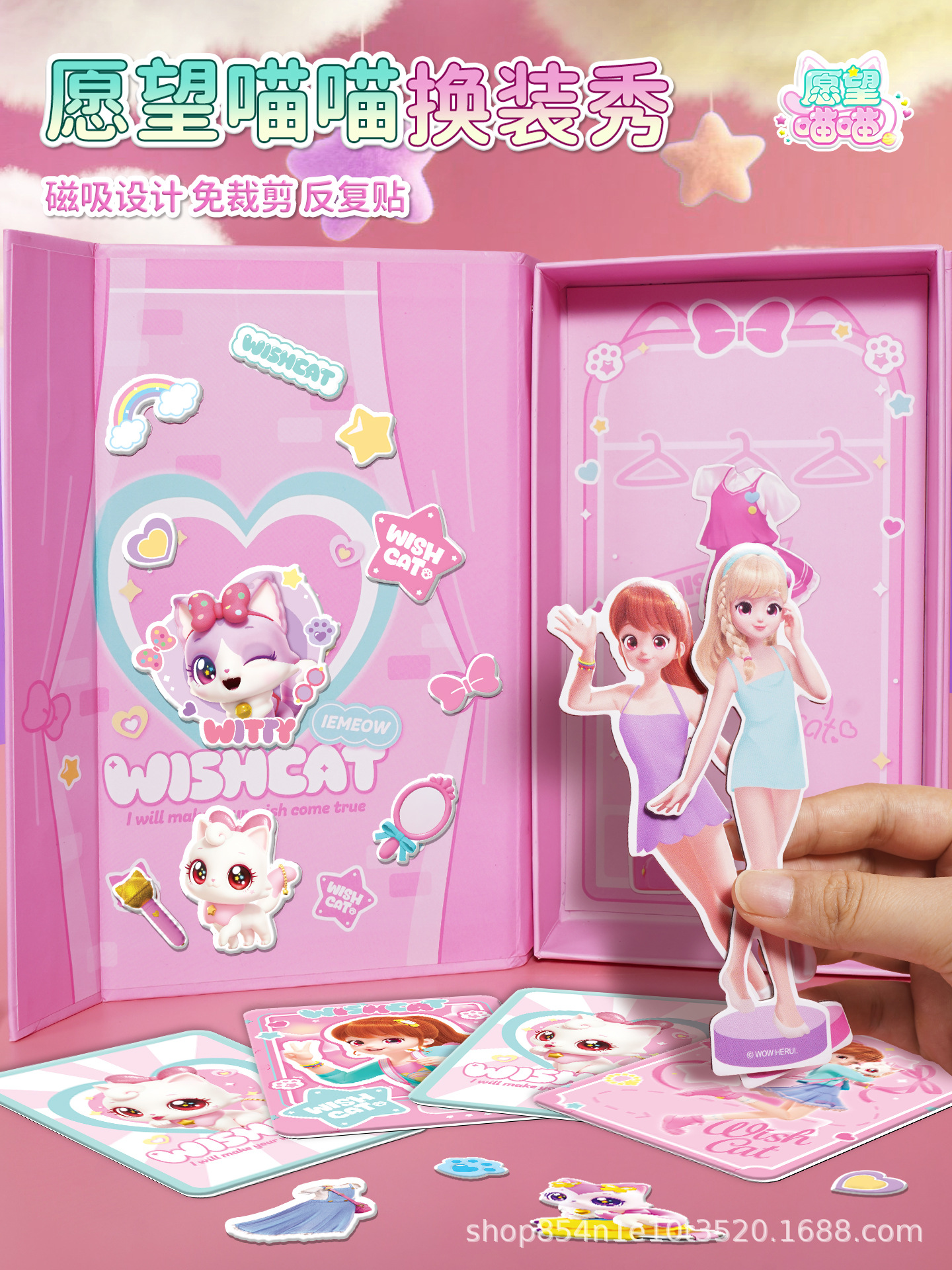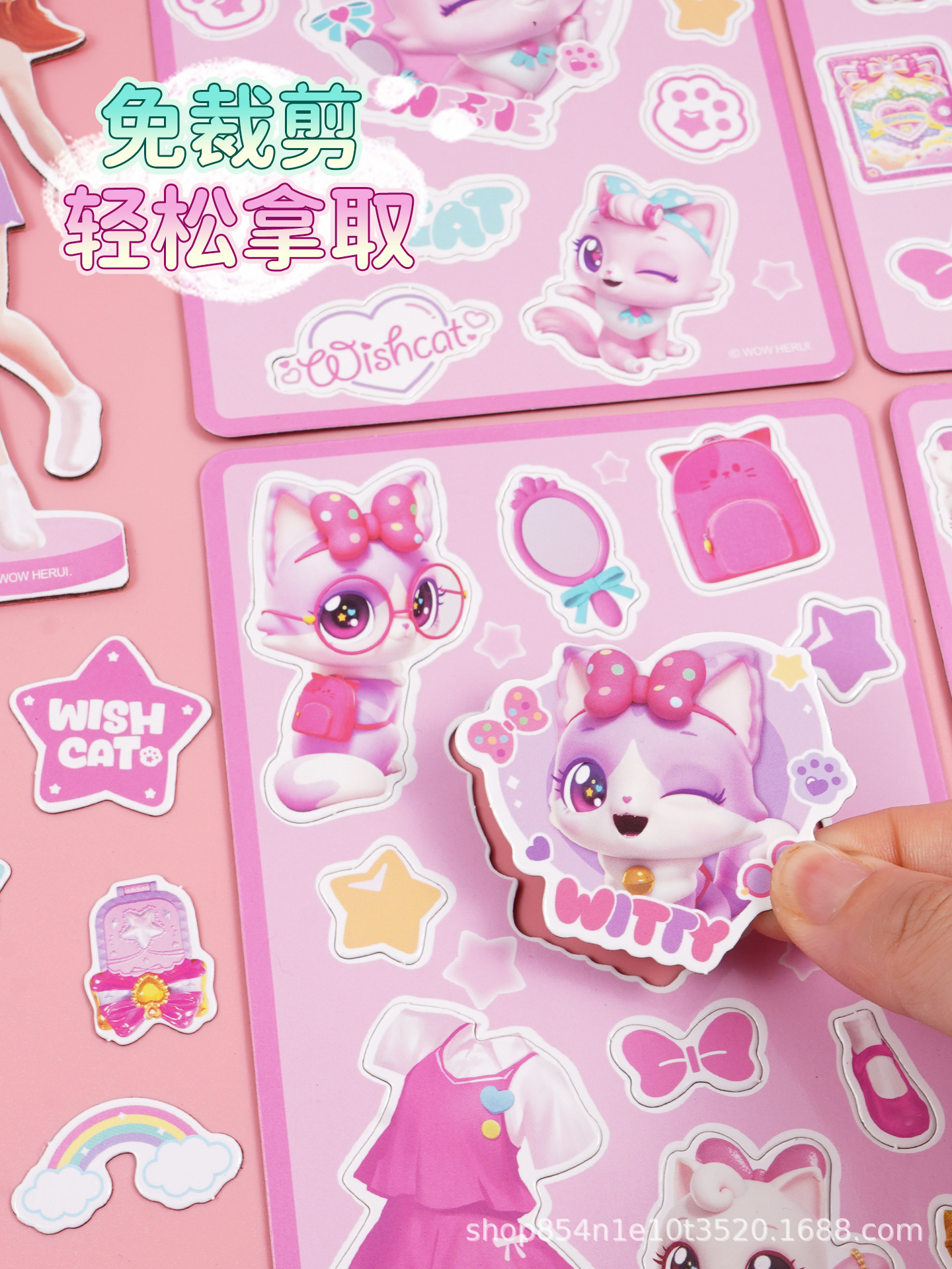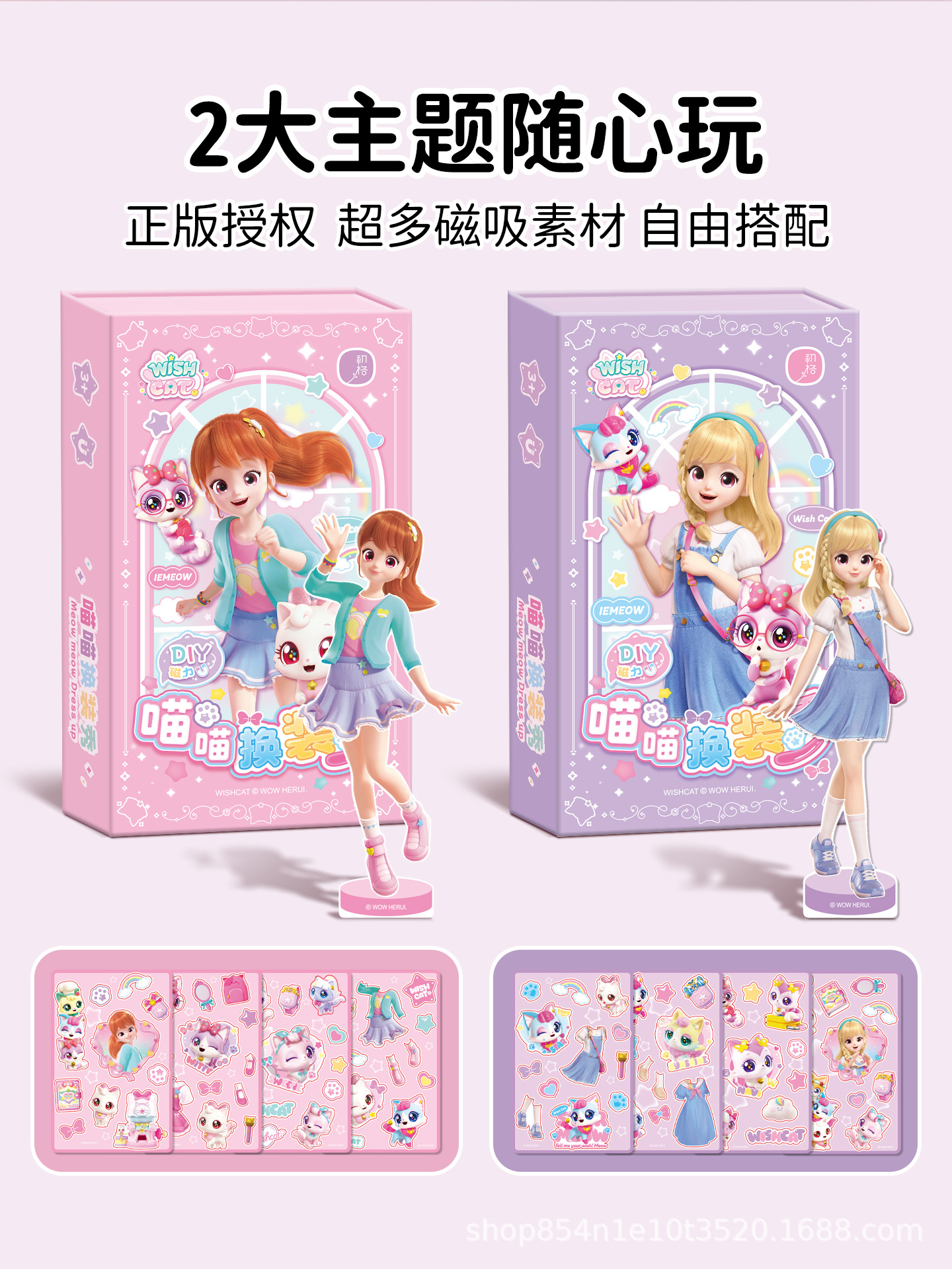 愿望喵喵换装贴纸磁力贴安静书3到6岁儿童女孩反复粘贴画益智玩具