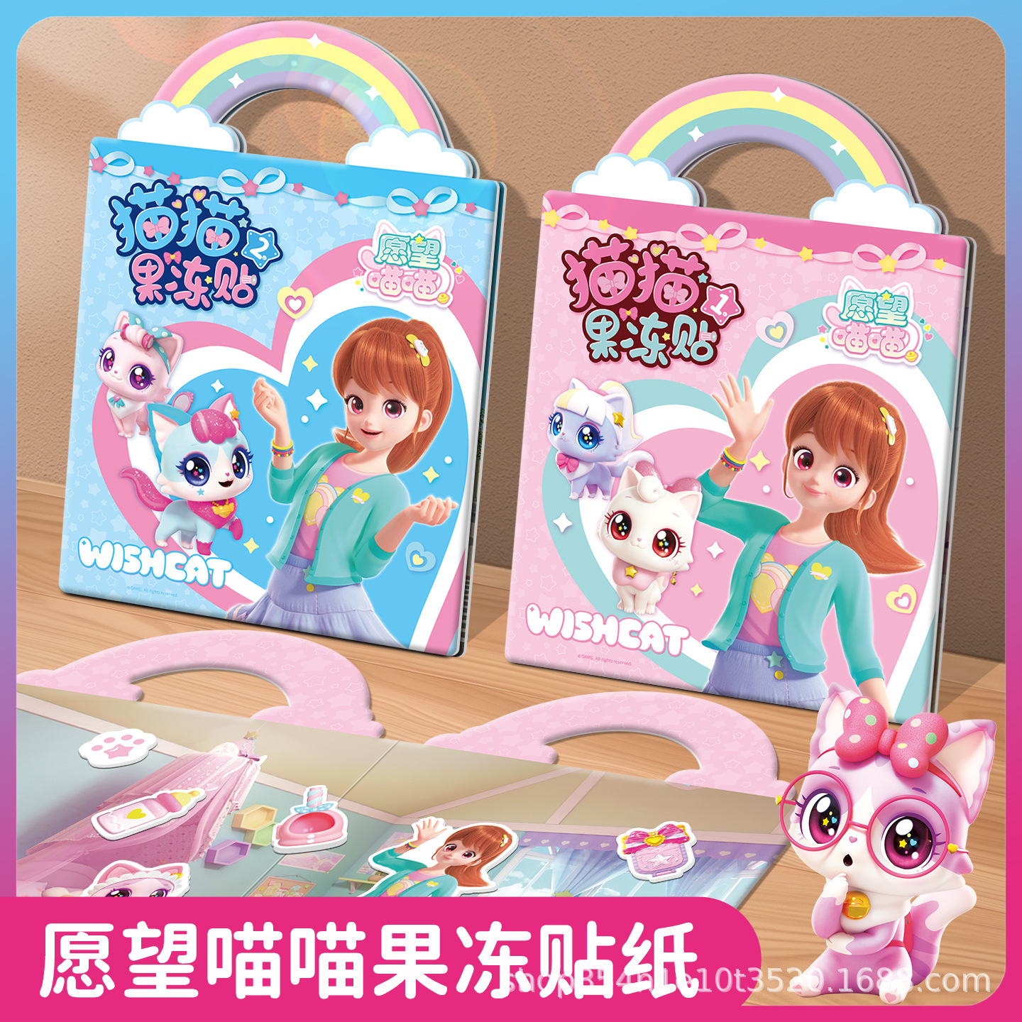 初格猫猫儿童果冻贴纸书可爱公主早教女孩益智玩具安静书反复粘贴