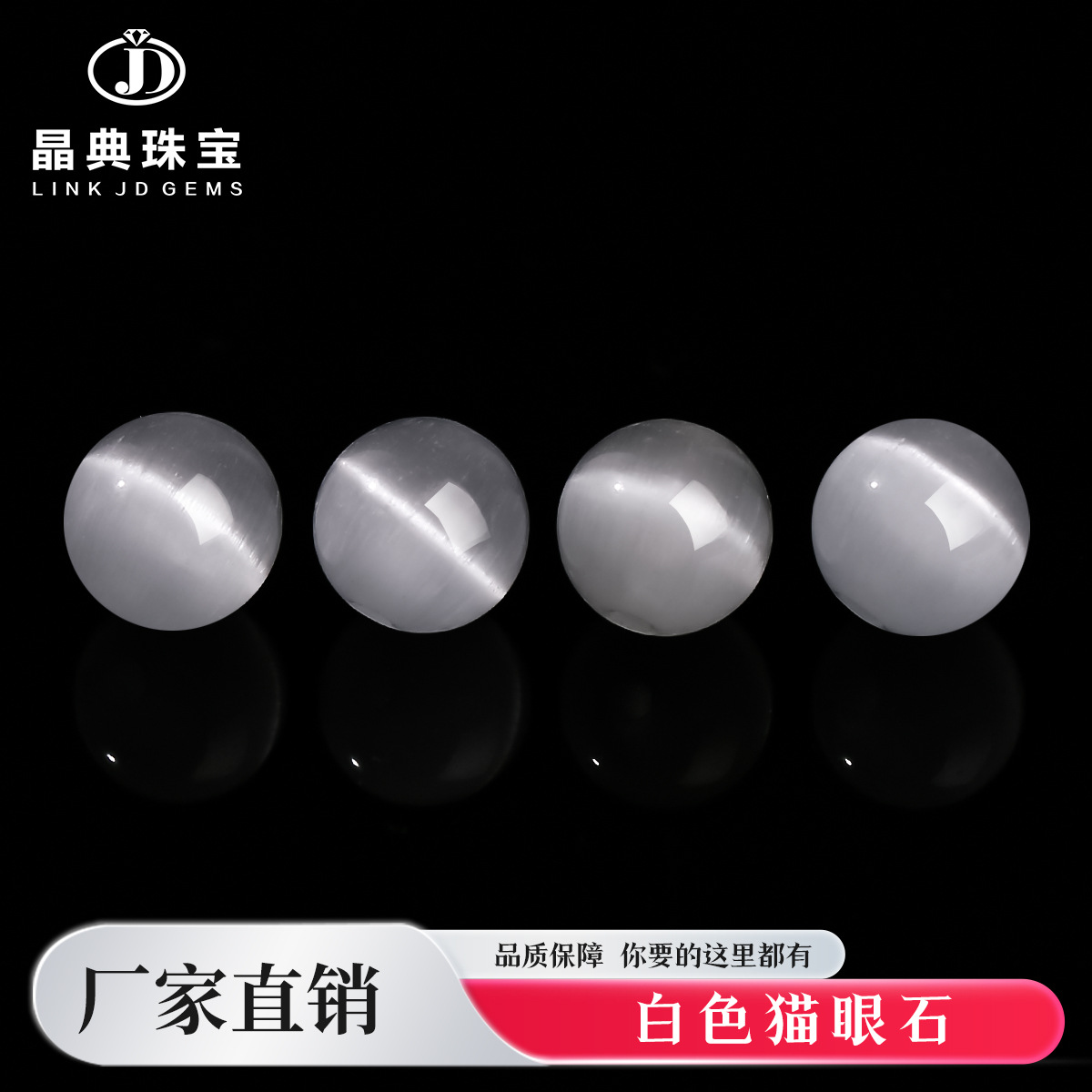 晶典珠宝 猫眼石散珠半成品白色圆珠diy手链串珠配珠饰品配件批发
