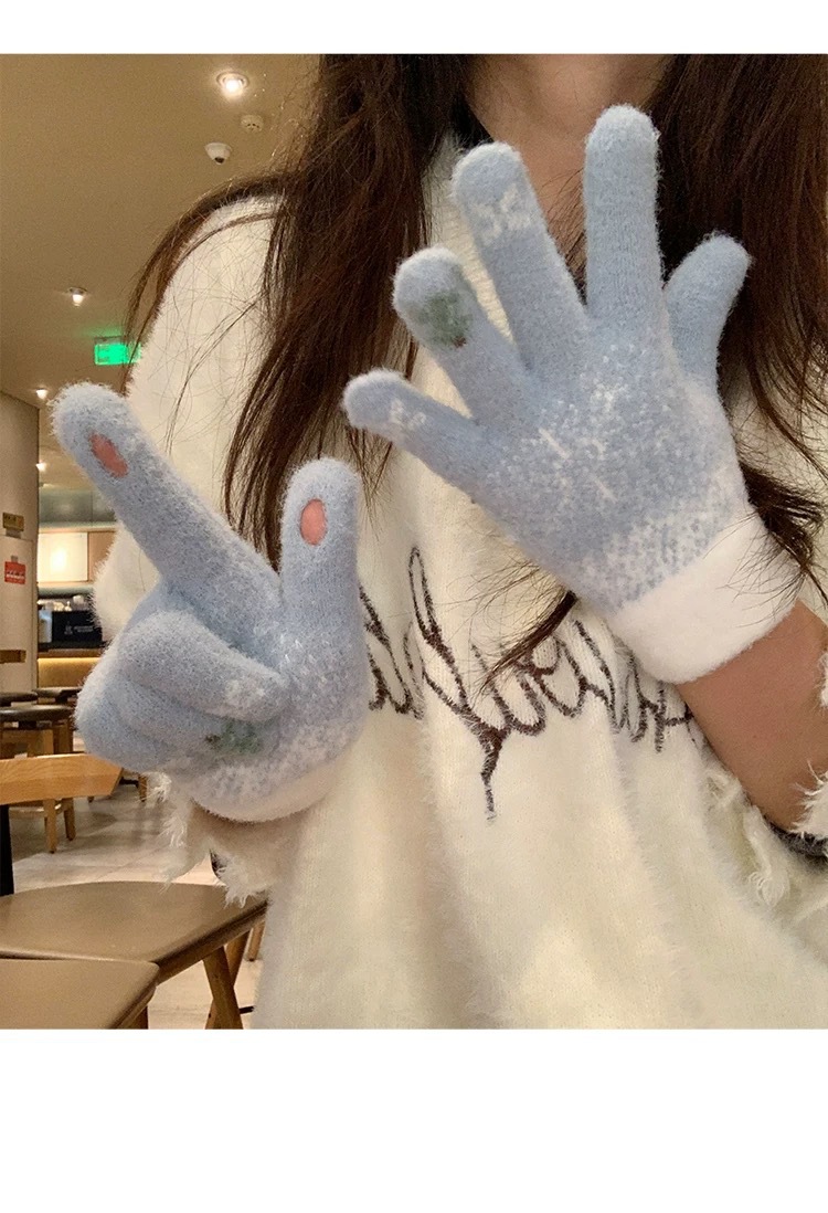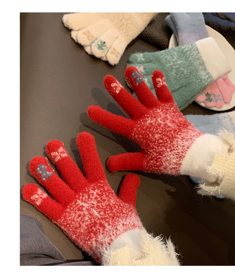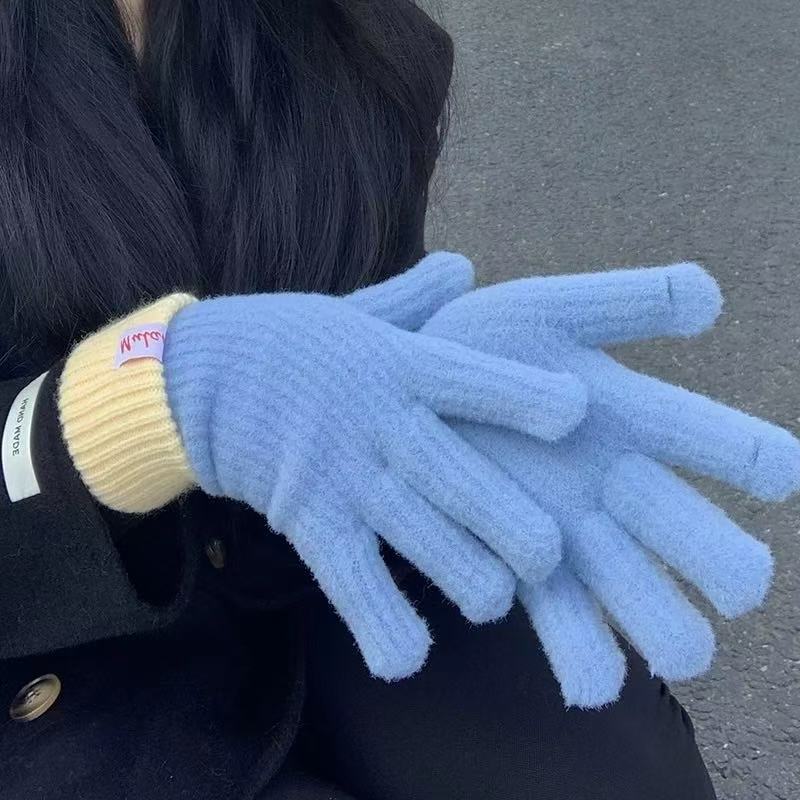 タッチパネル韓国版ins手袋女性秋冬レトロ百合学生かわいい五本指毛糸ニット保温騎乗