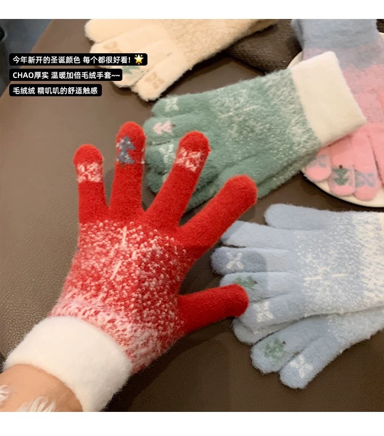 秋冬手袋雪だるまかわいい保温ファッション五本指手袋タッチパネルとベルベット厚いニット手袋卸売り防寒
