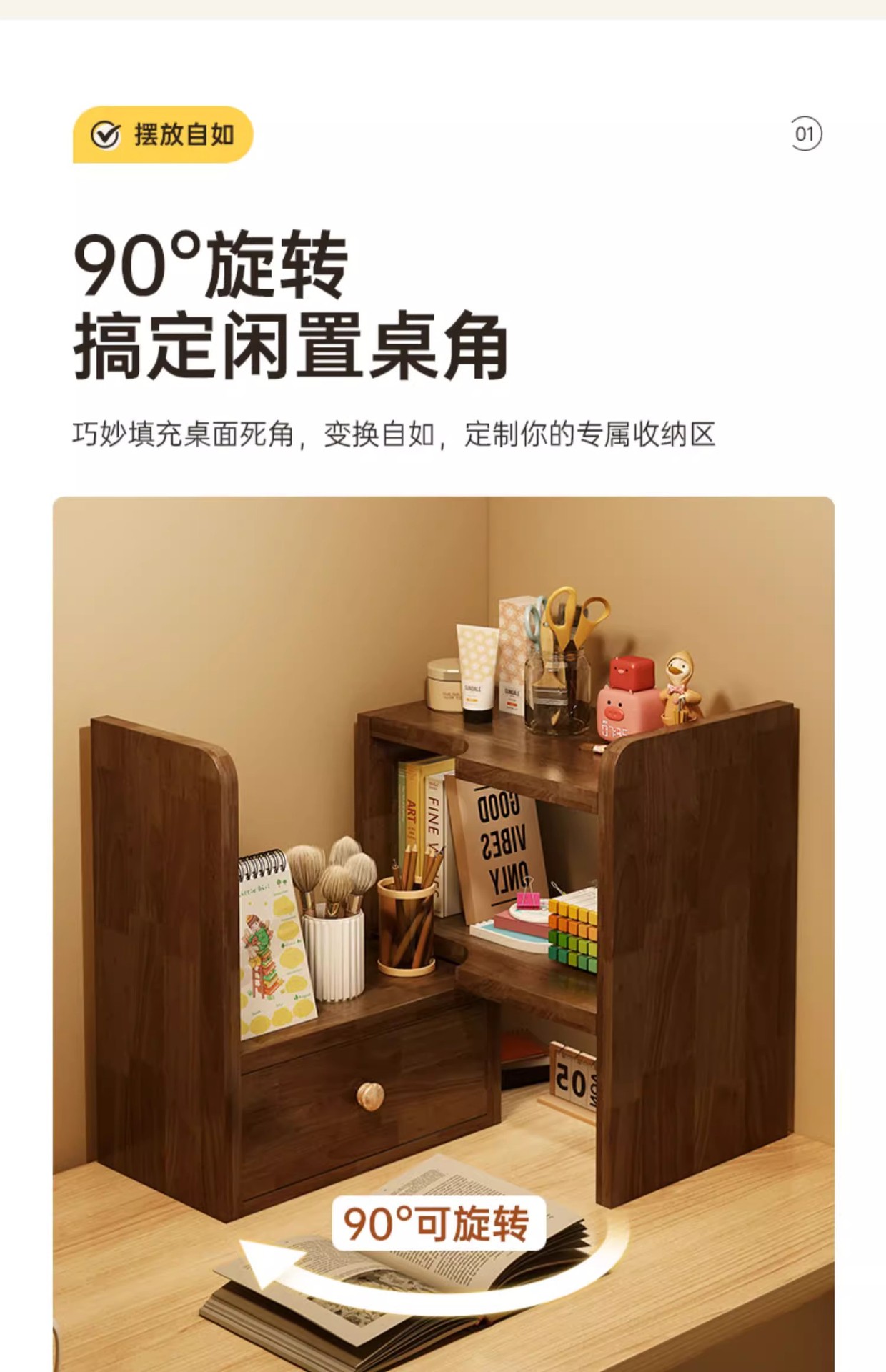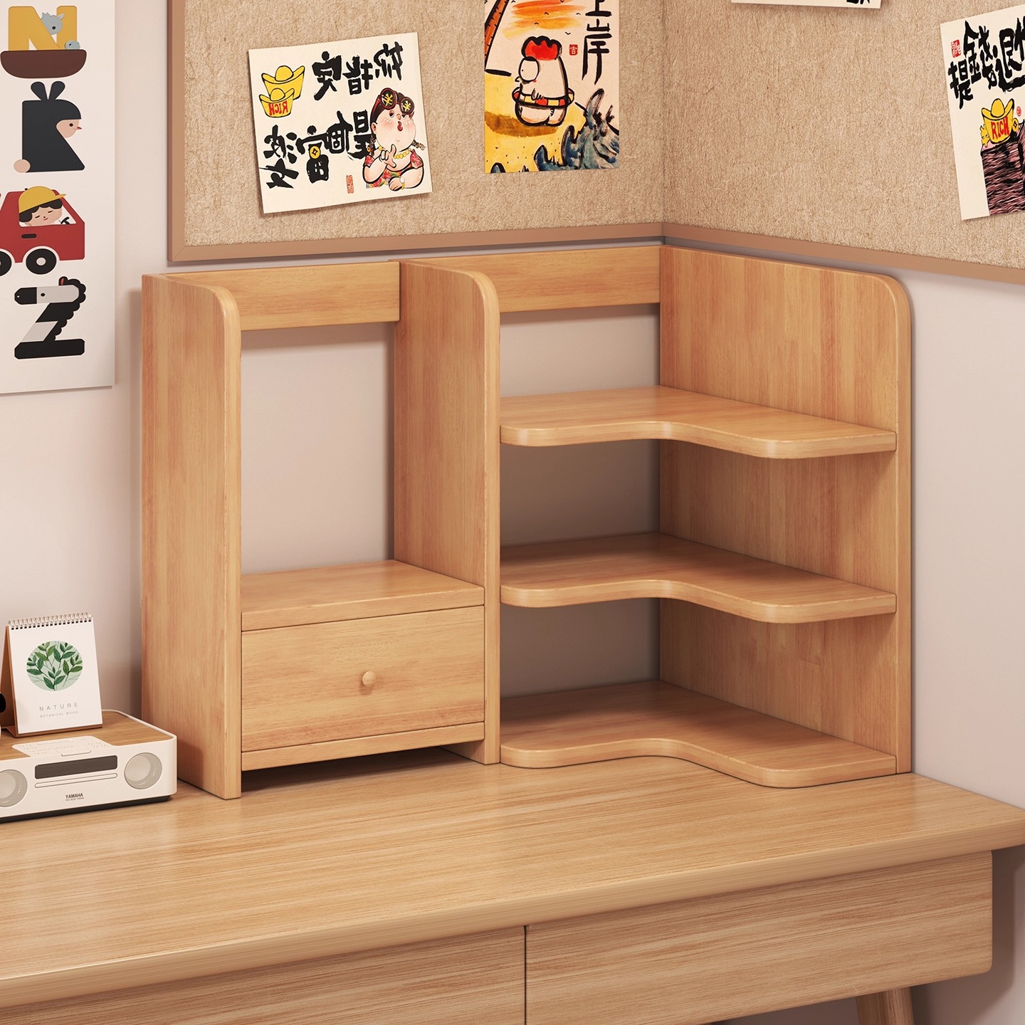 实木书架桌面置物架转角多层架办公室工位收纳架学生宿舍桌上书柜