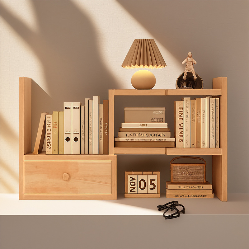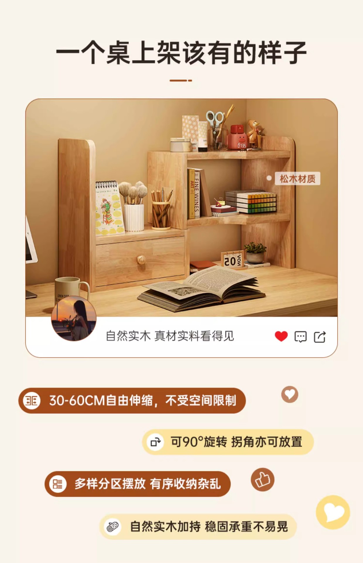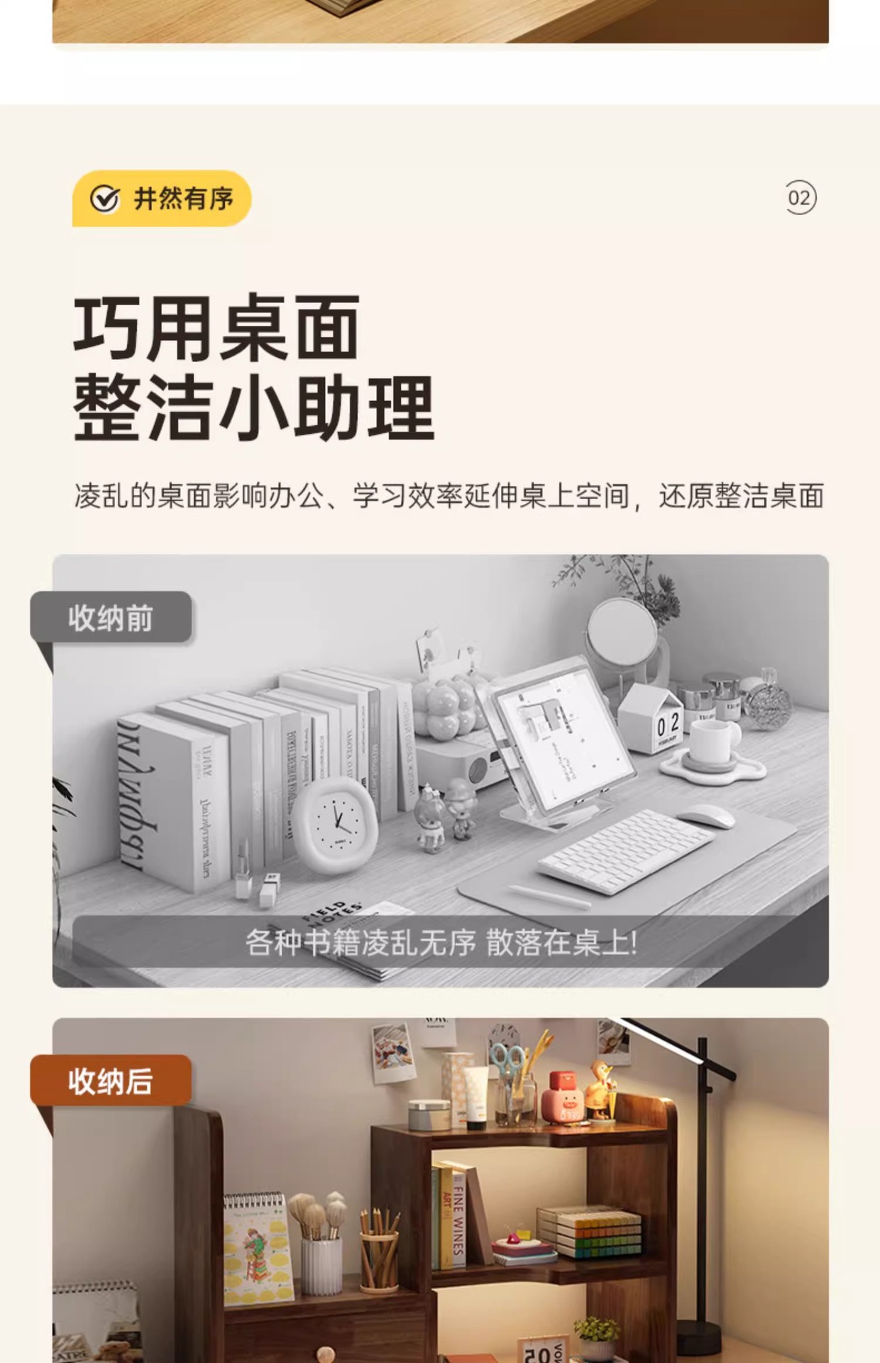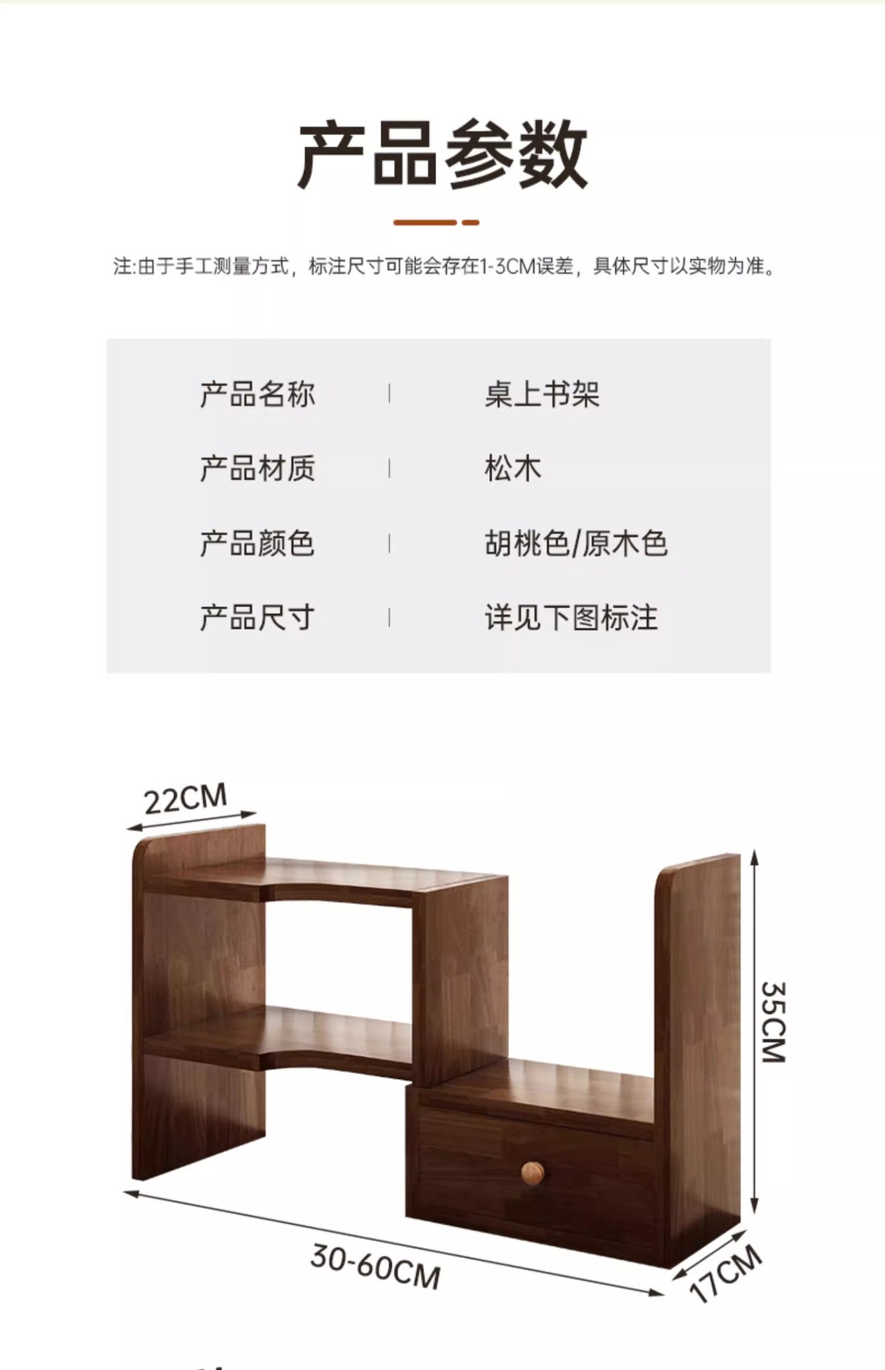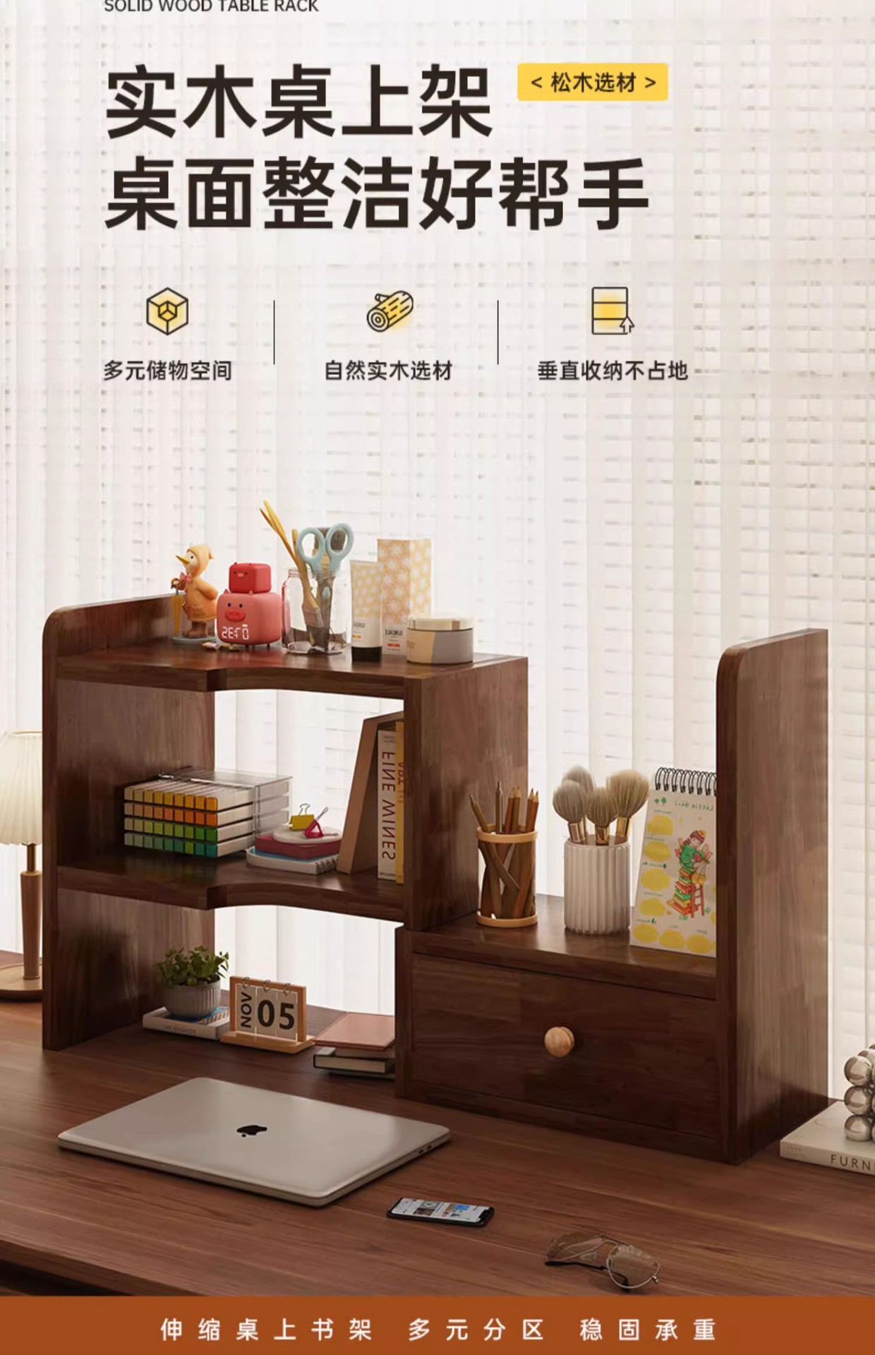 实木桌面书架宿舍桌上置物架办公室工位收纳神器书桌多层伸缩书柜
