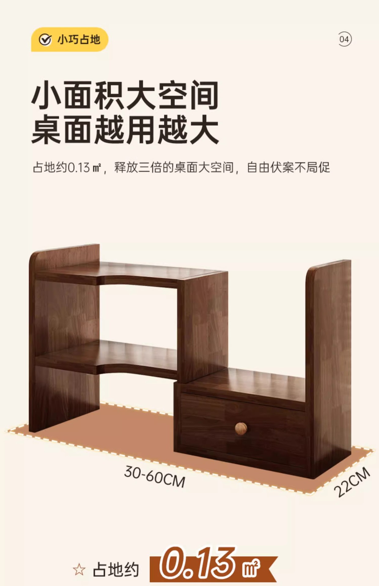 实木桌面置物架学生桌上小型书立办公室工位整理架子分区收纳书架