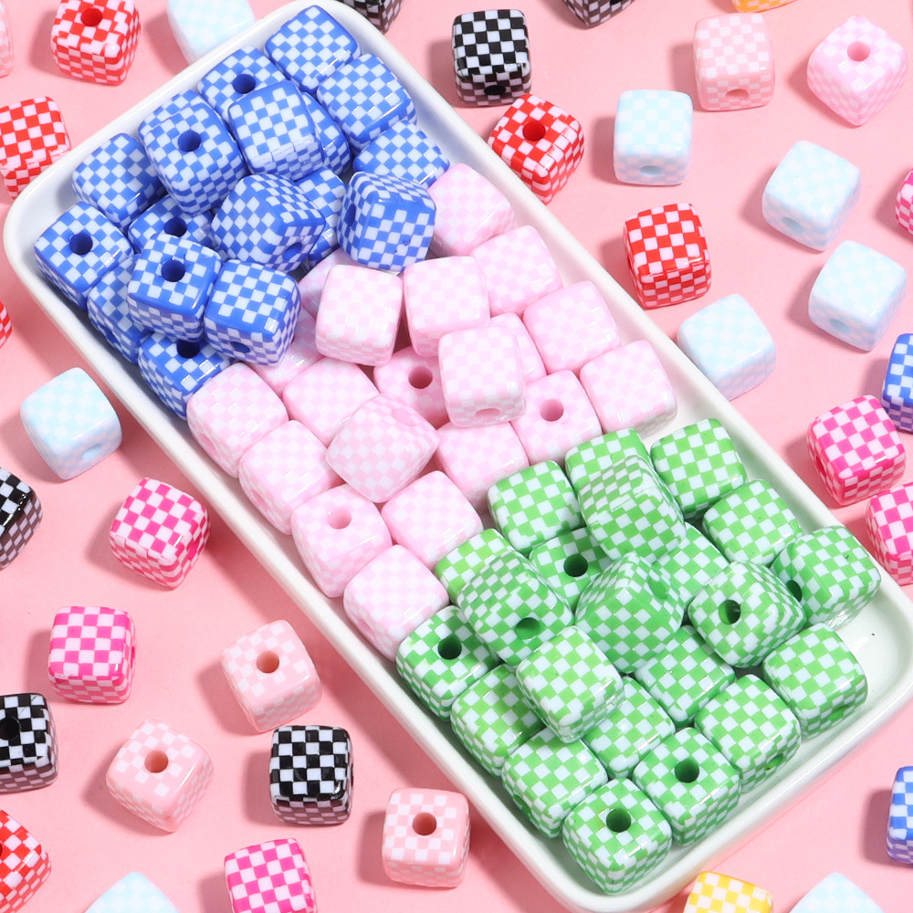 アクリルチェッカーボードスクエアビーズアクリルチェッカーボードストレートホールルースビーズ diy ブレスレットブレスレットジュエリーアクセサリー