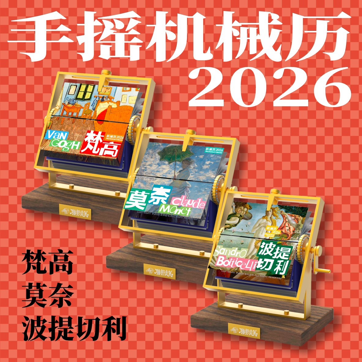联邦走马文创2026年机械日历手摇半月历莫奈梵高波提切利桌面台历