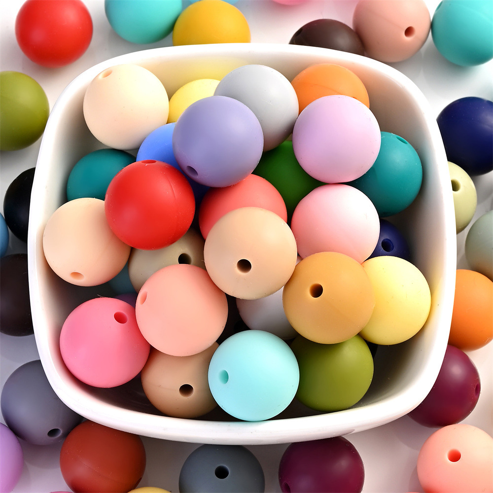 厳選されたクロスボーダーホットシリコンビーズベビー歯固め15mm食品グレードシリコン子供用ビーズdiyおしゃぶりチェーン卸売